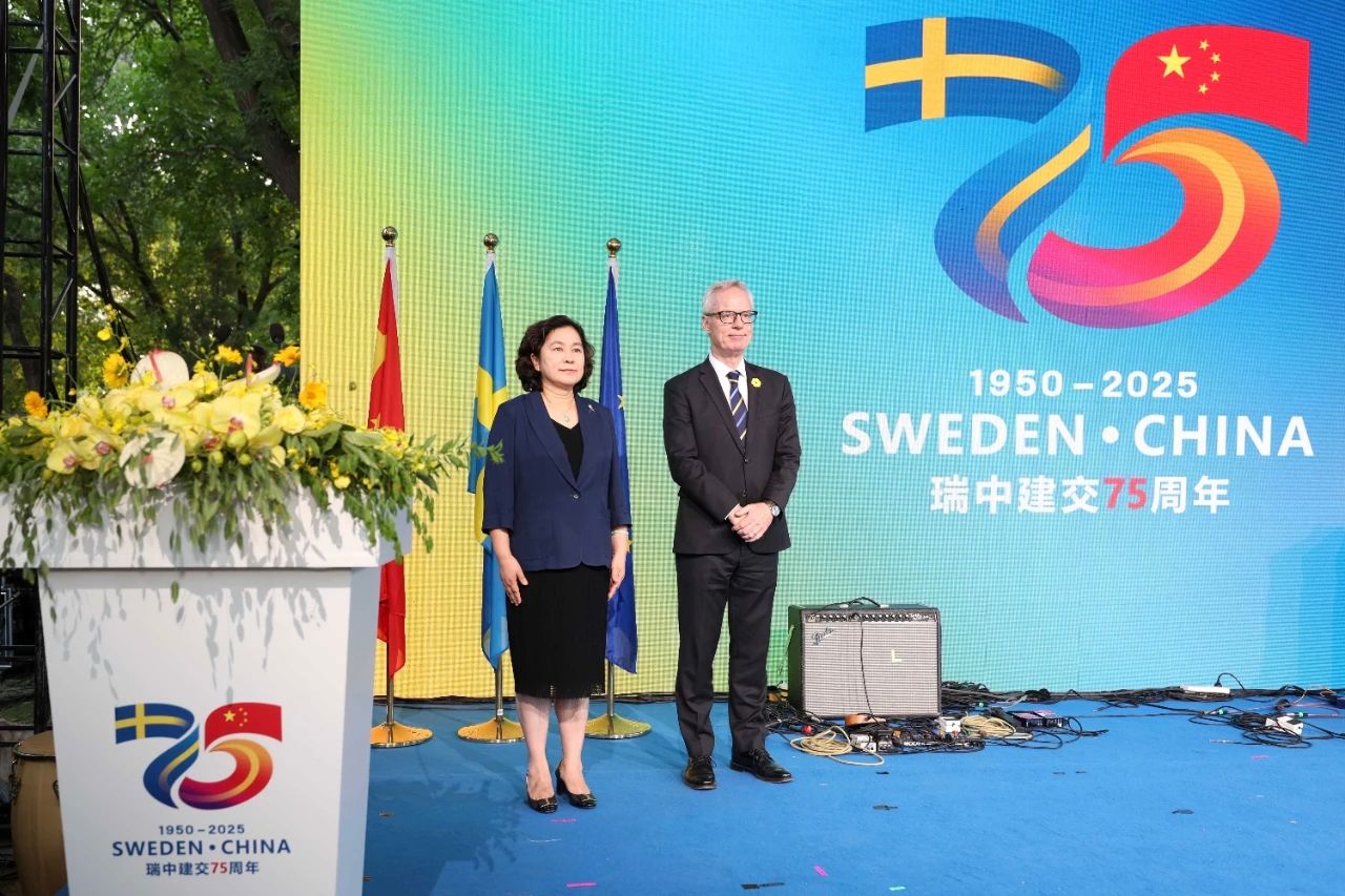 活动开始时,瑞典驻华大使欧思诚和华春莹副部长分别致辞。2025年是瑞典与中华人民共和国建交75周年。大使和华春莹副部长与全场来宾共同举杯,庆祝今年这个对于瑞中关系来说特别的年份。
