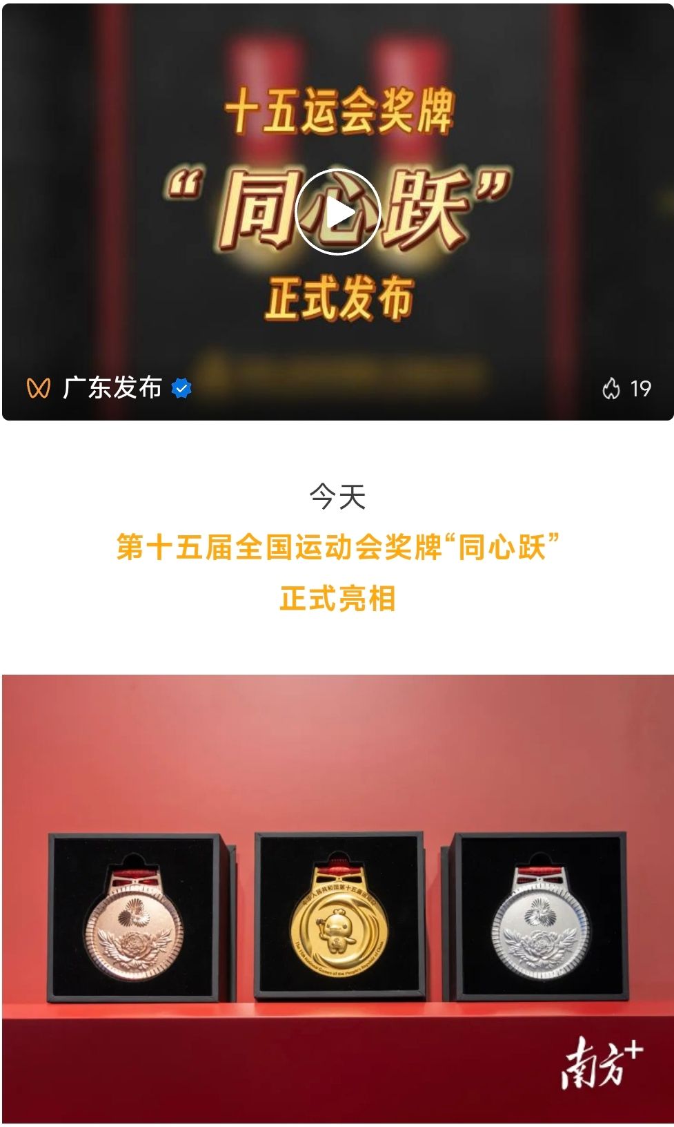 绽放的牡丹花、憨态可掬的吉祥物、十五运会醒目的会徽……一眼望去,这枚沉甸甸的奖牌要素满满。这枚成为全国各地健儿们目标的奖牌,出自一个5人的设计团队之手。团队由来自某珠宝集团的4位设计师和1位广州美术学院的教师组成。团队成员林鸿胜介绍,这枚奖牌代表粤港澳三地同心协力,共跃未来,所以取名“同心跃”。