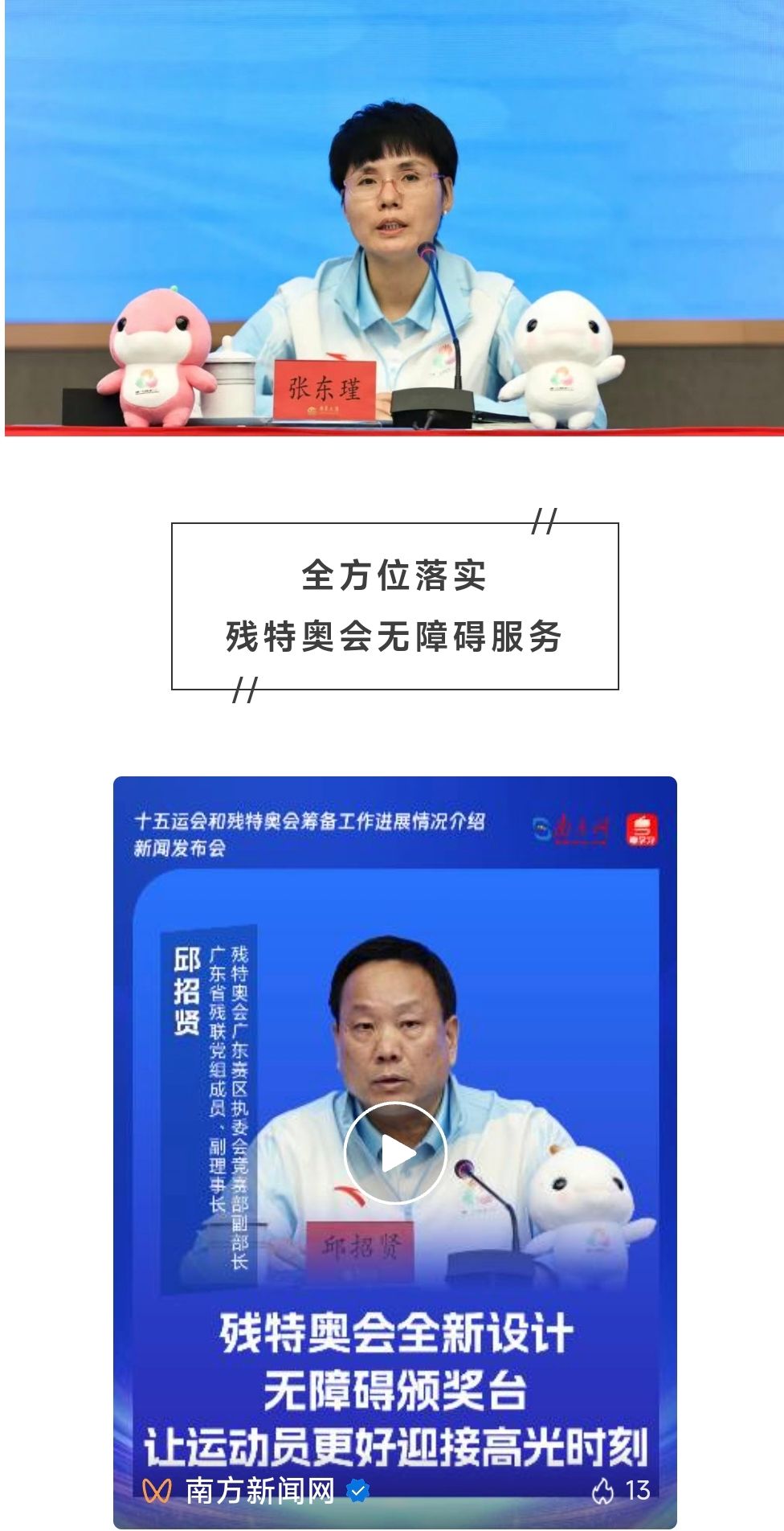 6月18日,十五运会组委会和残特奥会组委会举行“十五运会和残特奥会筹备工作进展情况”新闻发布会,介绍有关情况。本场发布会由十五运会和残特奥会广东赛区执委会新闻广电宣传部副部长、省政府新闻办副主任邓鸿主持。