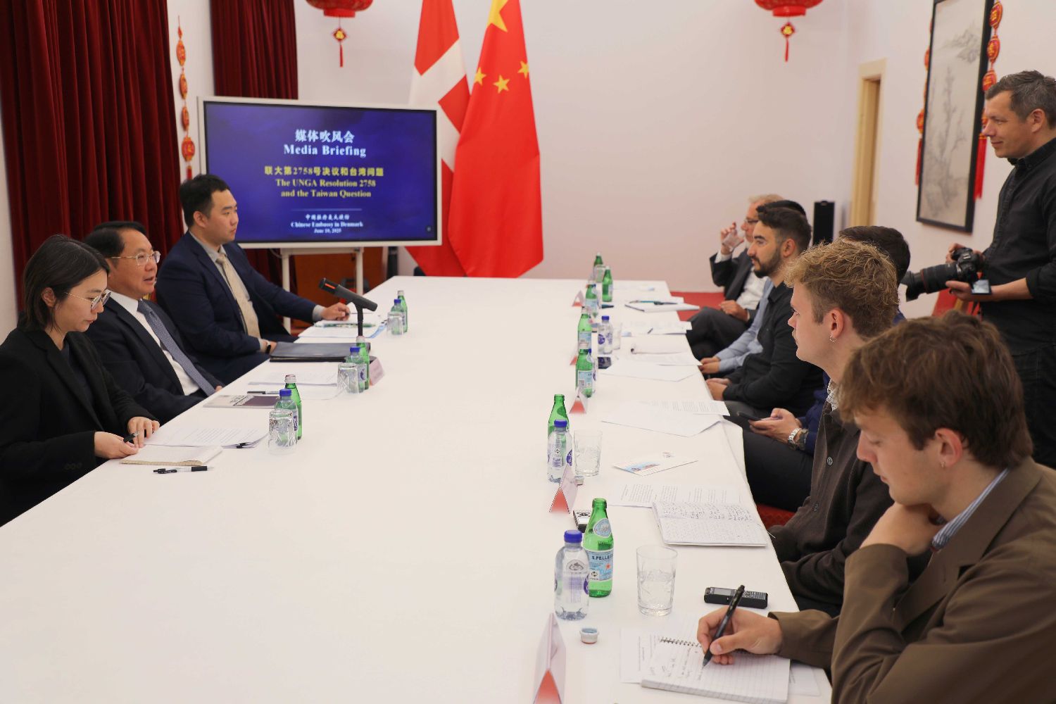 6月10日,中国驻丹麦大使王雪峰举行媒体吹风会,就联大第2758号决议及台湾问题阐述中方原则立场。《贝林时报》《政治报》《商报》《工人日报》《哥本哈根邮报》等丹麦主流媒体及路透社、东方卫视记者参会。