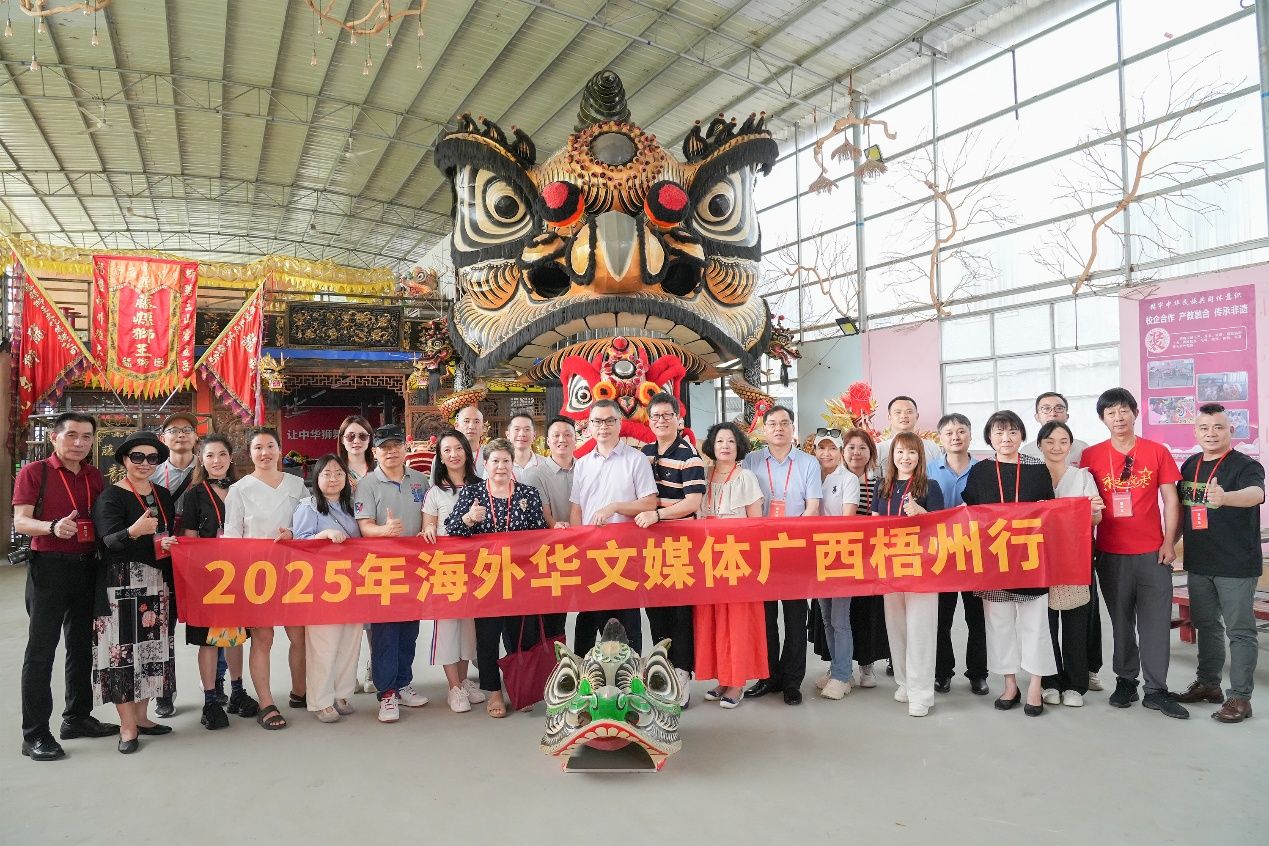 6月27日,参加2025年海外华文媒体广西行的媒体代表们来到梧州市藤县,实地探访国家级非物质文化遗产藤县狮舞传承发展情况。