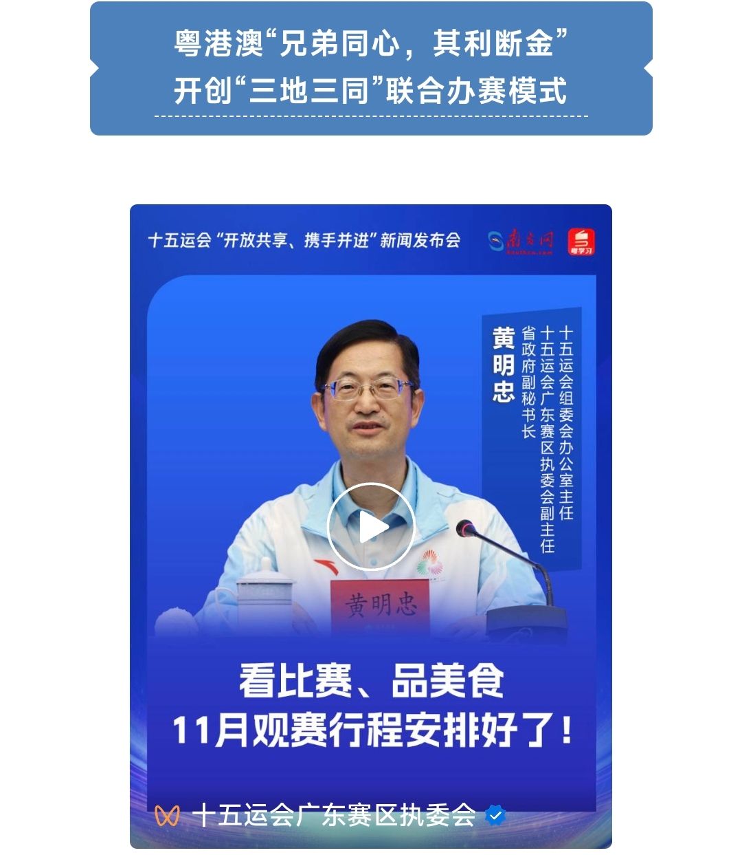 通关方面,组委会表示请大家放心,横琴口岸24小时通关。总之,“兄弟同心,其利断金”!在国家有关部门的指导下,粤港澳“三兄弟”共同努力,一定能够把这个体育盛会办好!