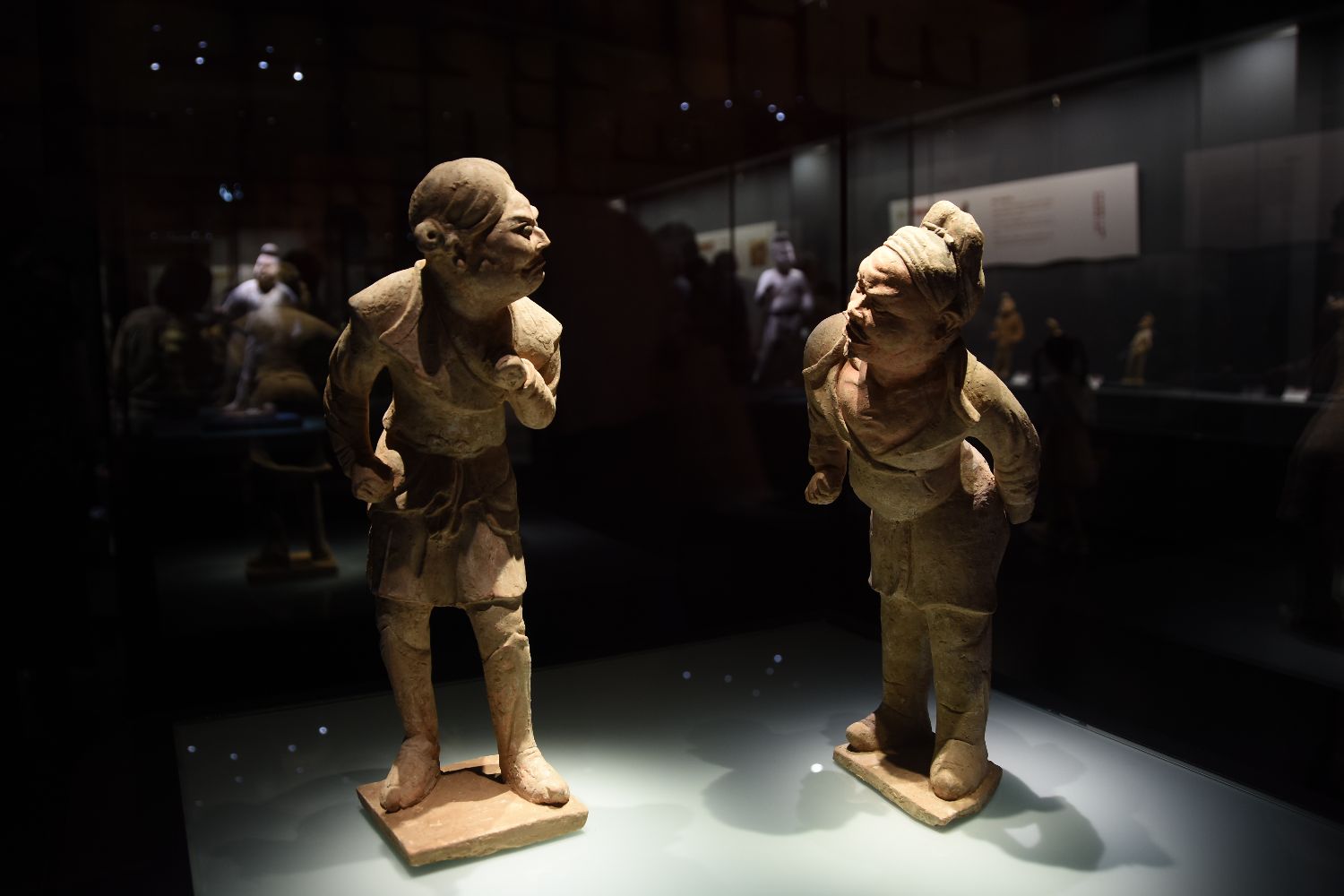 7月12日,《西游记——唐代陶瓷中的丝路文明》在河南郑州大象陶瓷博物馆开幕。图为胡人说唱俑。(图片来源:中新社)