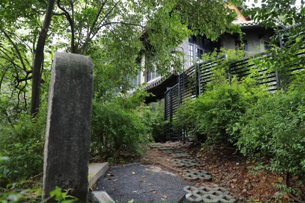 保罗・阿思密在重庆南山的墓碑,背后掩映着德国大使馆旧址。该建筑原为保罗・阿思密个人住宅,后短期租用为德国大使馆。(图片来源:中新社)