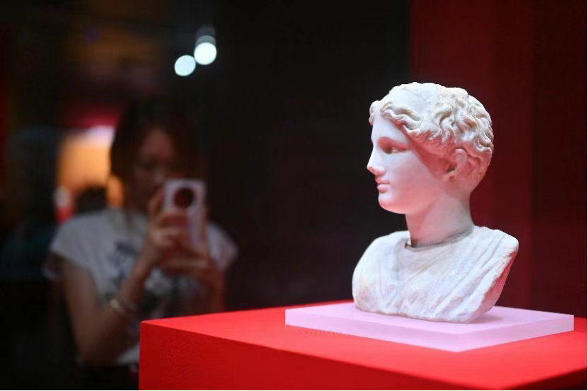 展览现场展出的阿芙洛狄忒半身像。(图片来源:中新社)