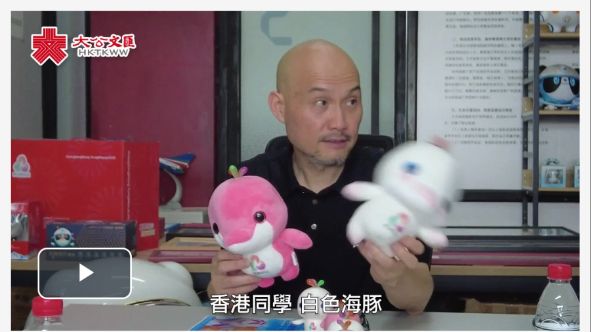 在香港文匯報記者專訪的過程中,港生們一邊愛不釋手地擺弄着桌上的吉祥物周邊,一邊追問「喜洋洋」「樂融融」身上的一些設計亮點,「為什麼兩隻白海豚的顏色不一樣?」「為什麼白海豚頭頂會有彩色水花?」「為什麼白海豚的尾巴是愛心形狀?」