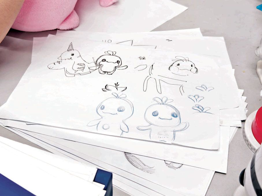 「一開始我們設想的吉祥物有三個,分別是代表廣東的華南虎、代表香港的白海豚和代表澳門的黑臉琵鷺,但考慮到三個形象容易分散關注焦點,最終決定只用一個形象。」劉平雲坦言,要選擇一個能夠代表大灣區的形象,需要考量的因素是很多的。設計團隊先後嘗試了動物、植物、非生物等元素,包括代表嶺南文化的醒獅、代表大灣區的擬人化「大」字形象。「每一個元素被提出後,團隊並非憑空用概念來討論,而是要畫出具體的草圖和渲染圖,再聚在一起開會探討可行性。」正是在這樣謹慎認真的反覆論證下,「中華白海豚」的概念脫穎而出,而那整面牆的草圖,正是團隊成員多少個徹夜加班的工作痕跡。