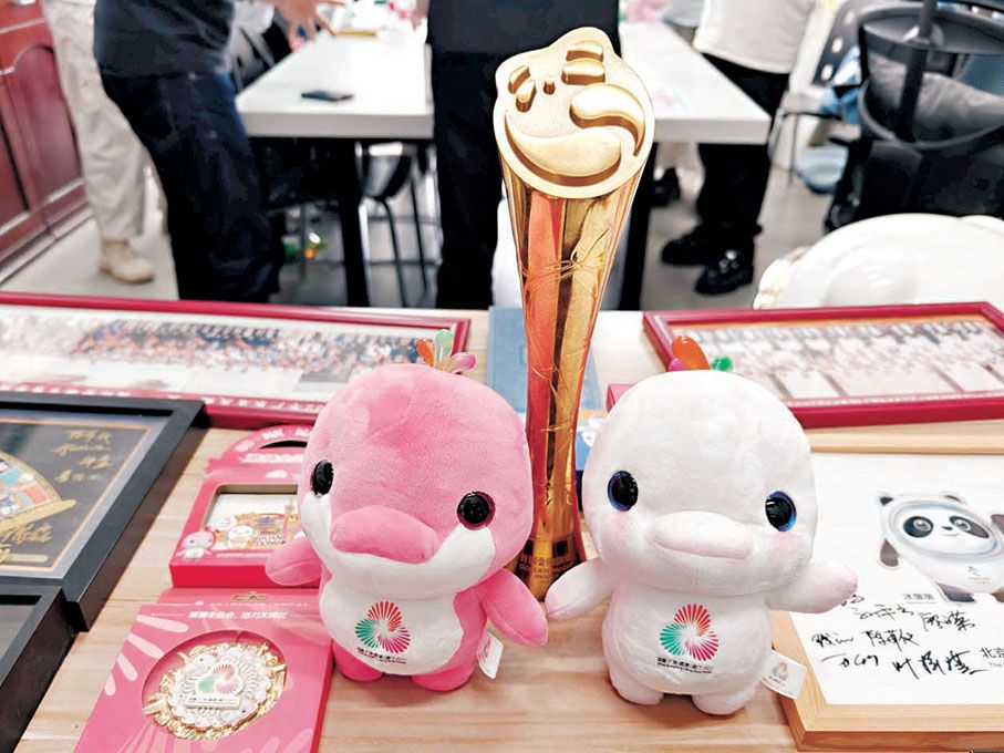 (香港文匯報記者帥誠廣州報道)由粵港澳三地聯合舉辦的十五運會和殘特奧會,不僅是體育競技的盛大舞台,更是大灣區同心共築的文化紐帶。近日,香港文匯報記者走進廣州美術學院昌崗校區,專訪了本次賽會吉祥物「喜洋洋」「樂融融」的設計者——該校視覺藝術設計學院教授劉平雲。推開辦公室門,同行的幾位香港學生立刻被室內琳琅滿目的十五運和奧運會元素所吸引,不約而同發出「哇~」的驚嘆。在一面約10米長的牆壁上,整整齊齊鋪滿了A4紙大小的設計草圖,其中以中華白海豚為原型創作的吉祥物尤為醒目。這對承載着「喜氣洋洋、其樂融融、團圓和美」寓意的吉祥物,從構思到定稿歷經多次打磨,草圖牆上層層疊疊的修改痕跡,正是用設計語言串聯起灣區情誼與體育精神的最佳印記。