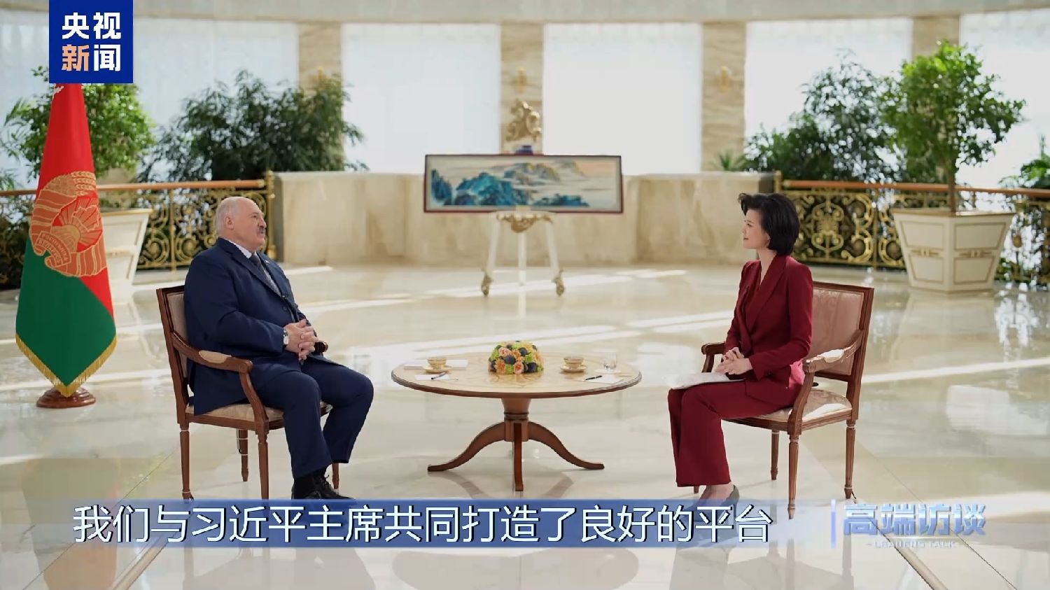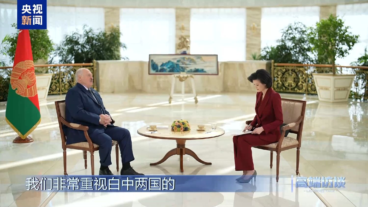 邹韵:卢卡申科总统,您好!感谢您再次接受中央广播电视总台《高端访谈》的专访。我们知道您在担任总统期间先后15次访问中国,并且即将在本月底开启您第16次对中国的访问。这么密集地访华,是不是因为您把中白关系放在一个极为重要的位置?同时对于即将开启的访华之旅,您有什么样的期待?