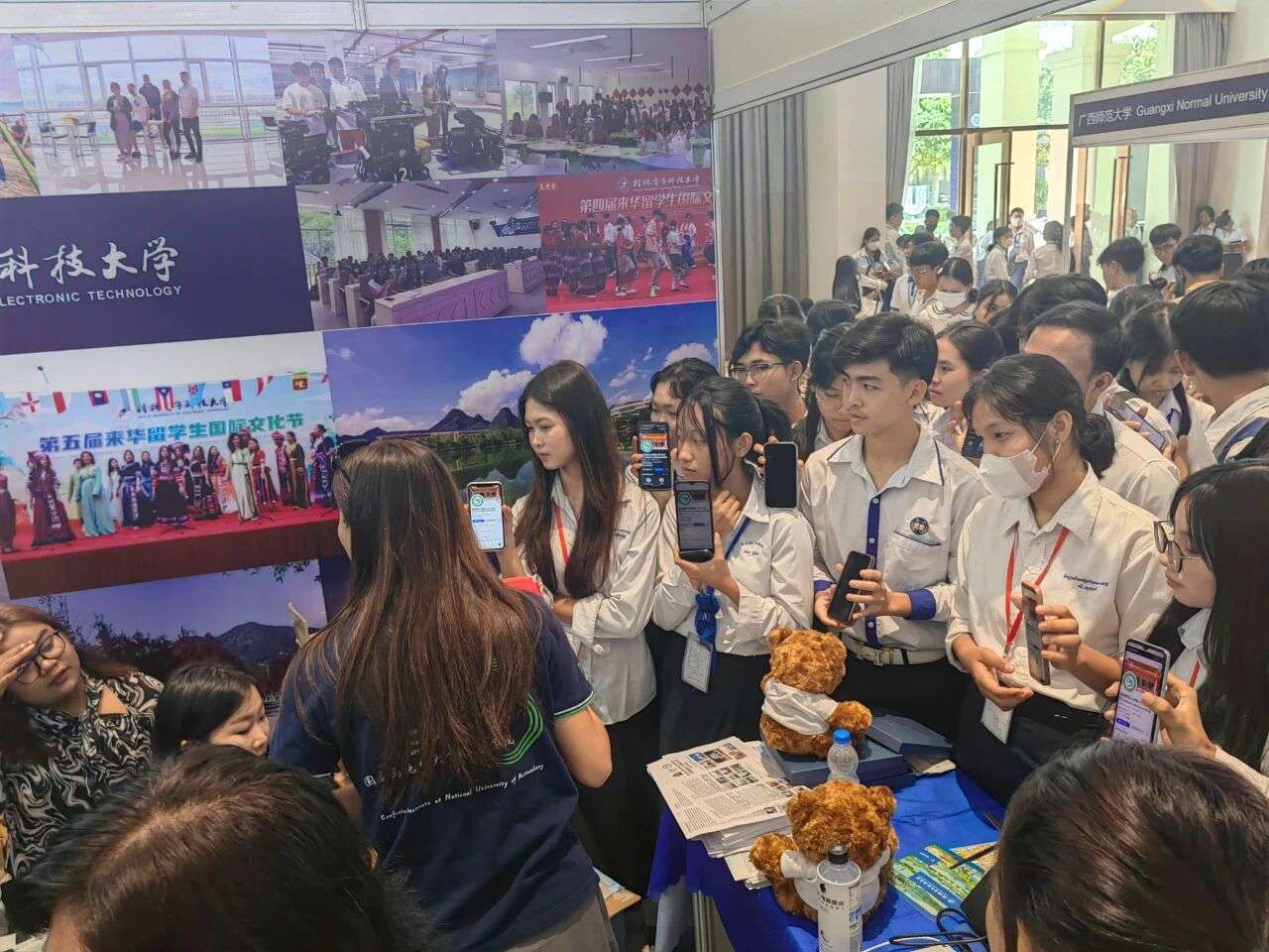 2025年5月13日,由中国广西壮族自治区教育厅主办的2025年“留学广西”国际教育展在金边举办,吸引众多柬埔寨学生驻足。中新社记者杨强摄