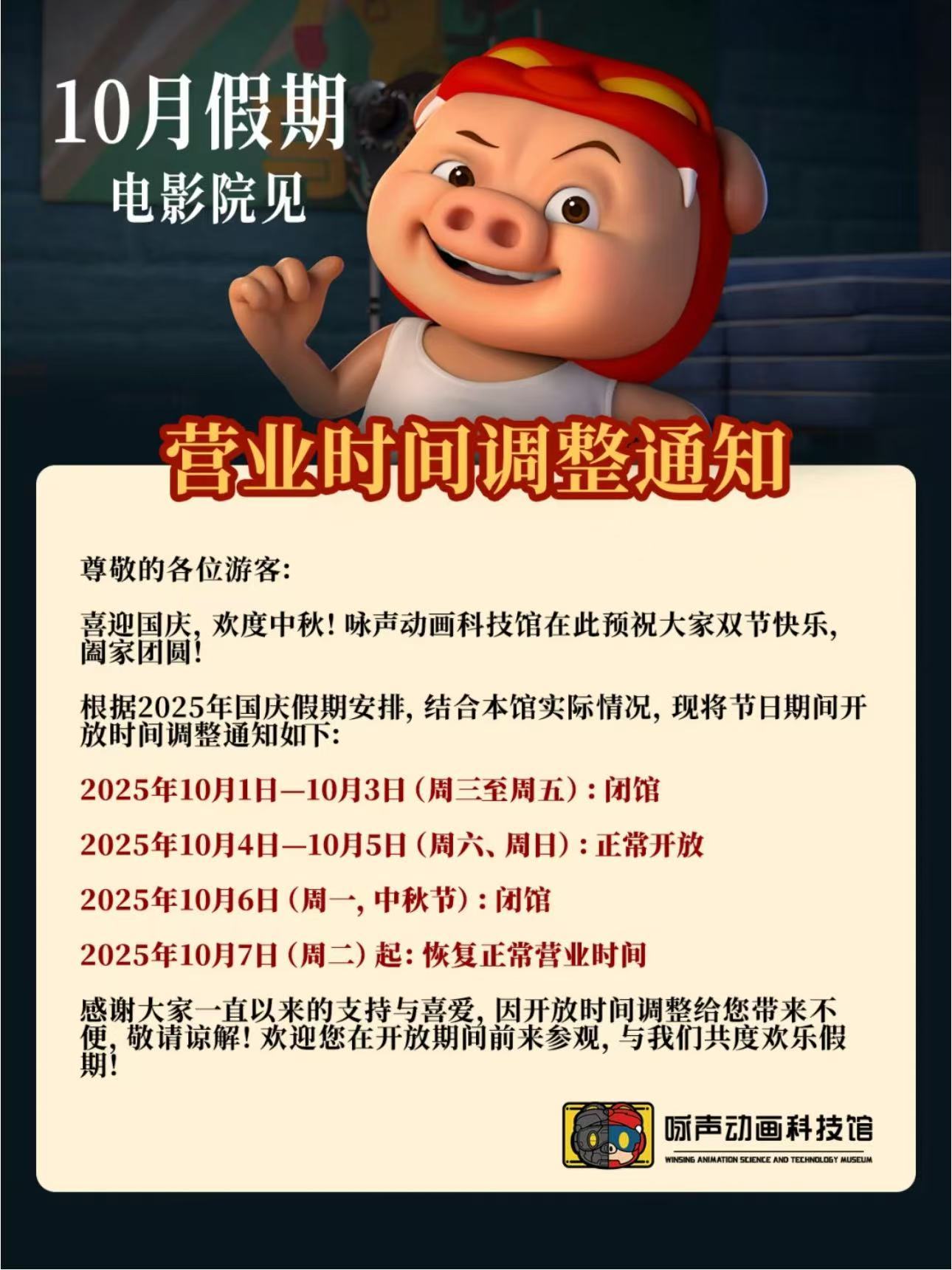 还有国庆档上映的《猪猪侠·一只老猪的逆袭》,正值猪猪侠IP诞生20周年,来广州可别忘了去tour猪猪侠的“老家”——广州咏声动画科技馆!一共三层,一楼周边展示区,二楼动画科技馆,三楼广府新次元小镇,既可玩耍拍照,又能了解动画制作流程和广府文化。