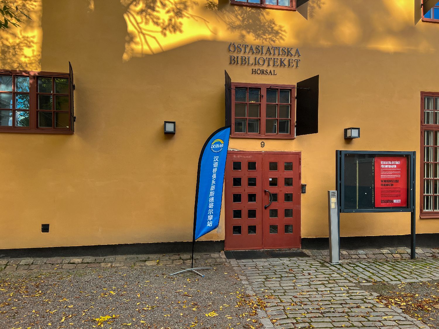 会场入口处汉语桥俱乐部斯德哥尔摩站标识