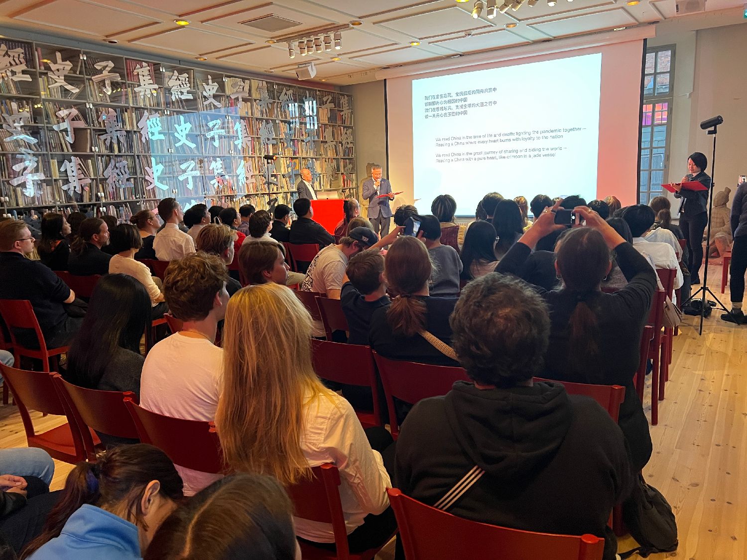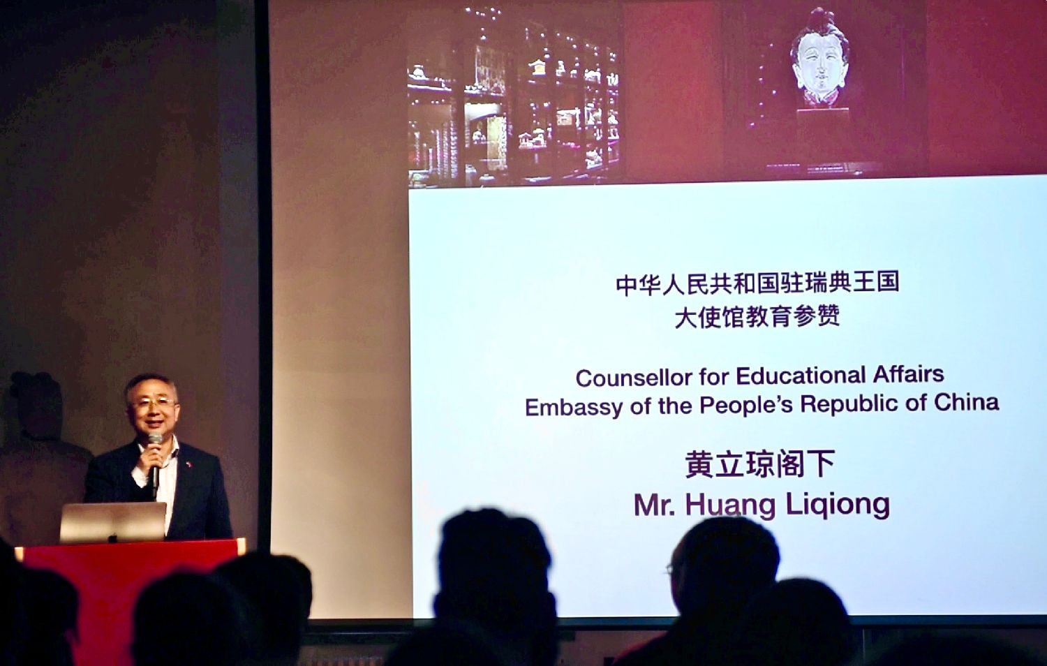 中国驻瑞典使馆负责教育事务的参赞黄立琼出席并致辞,他还和使馆同事一起,在《我爱你中国》的音乐声中,朗诵了长诗《读中国》,受到参会人员的热烈欢迎。