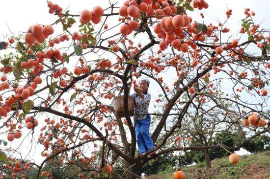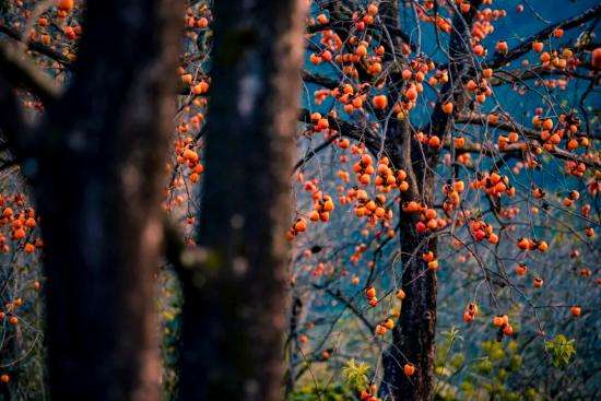 寒露点染,岭南的柿子渐渐浸透秋意。山间路旁,橙红点点,悬在枝头如诗如画。