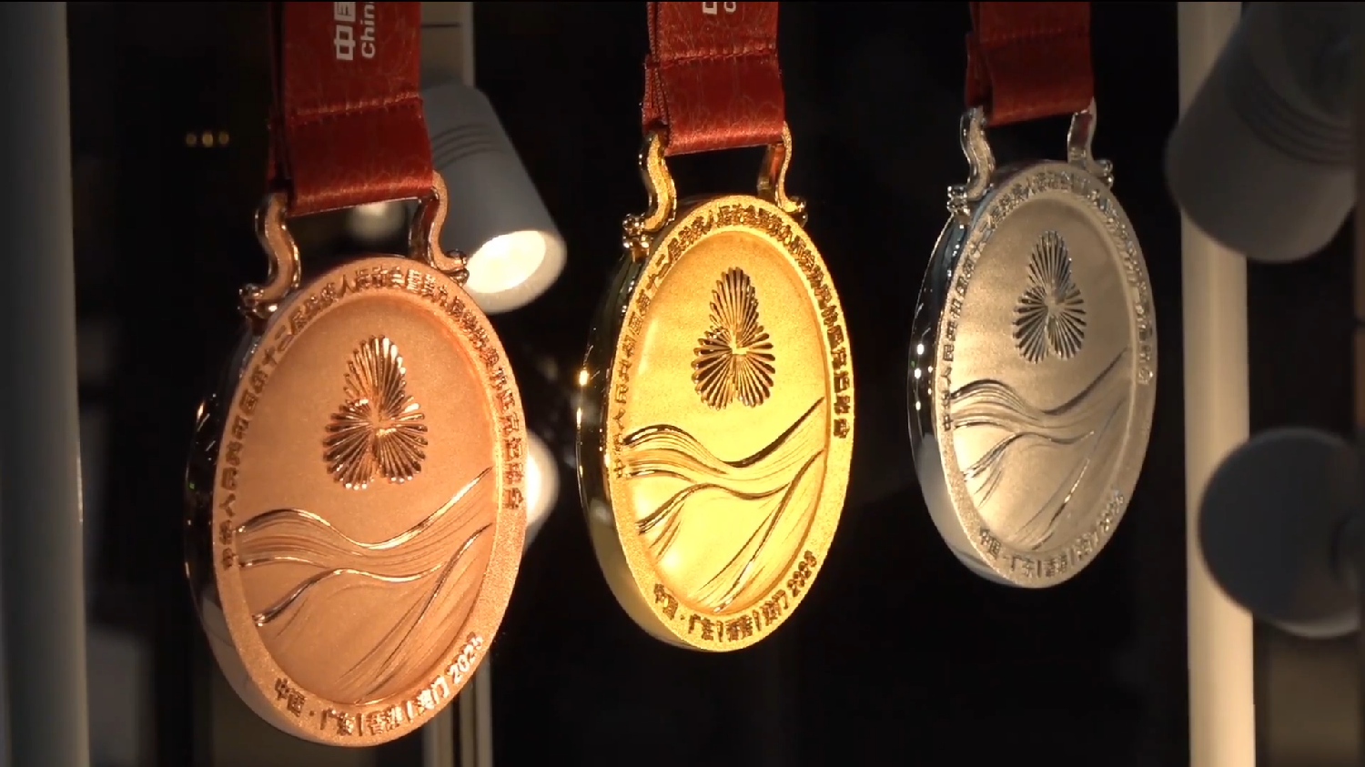 值得一提的是,本屆競體項目獎牌的會徽面首次採用無文字設計,純以圖案敘事:同心禮花由下方的牡丹托舉,生動詮釋了粵港澳大灣區在祖國的堅實依託下蓬勃發展,綻放於世界舞台,呈現「三花映牡丹,盛世綻芳華」的美好景象。