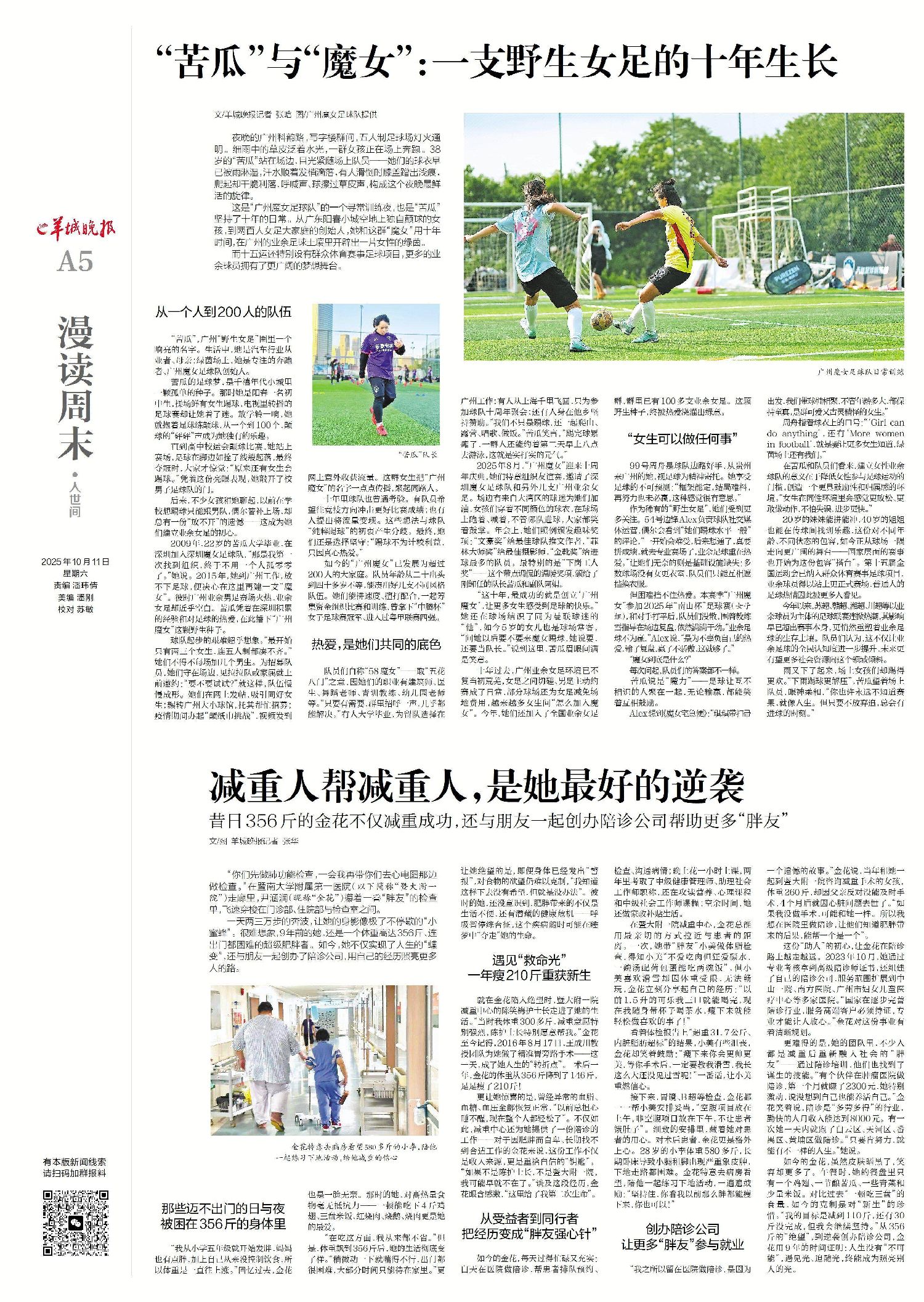 “这十年,最成功的就是创立‘广州魔女’,让更多女生感受到足球的快乐。”她还在球场结识了同为曼联球迷的“他”,如今5岁的女儿也是球场常客,“问她以后要不要来魔女踢球,她说要,还要当队长。”说到这里,苦瓜眉眼间满是笑意。