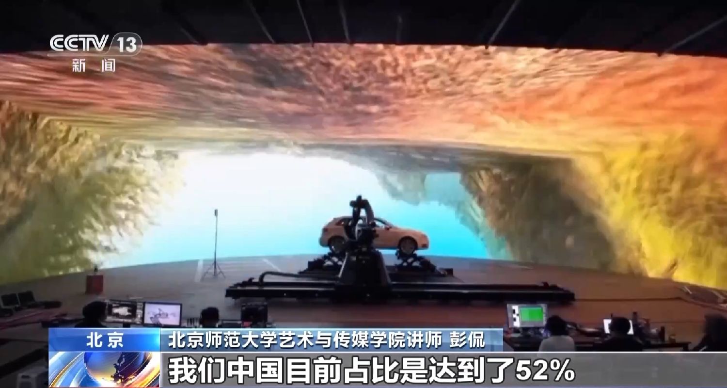 北京师范大学艺术与传媒学院讲师彭侃:我们今年看到的在海外票房表现最好的这些国产影片,应该说他们都是代表了各自类型到目前为止,国产电影的最高的工业化水平。在全球虚拟制作的专利排行榜当中,我们中国目前占比达到了52%,位列全球第一,这代表着我们中国电影的工业化水平是在快速进步的。