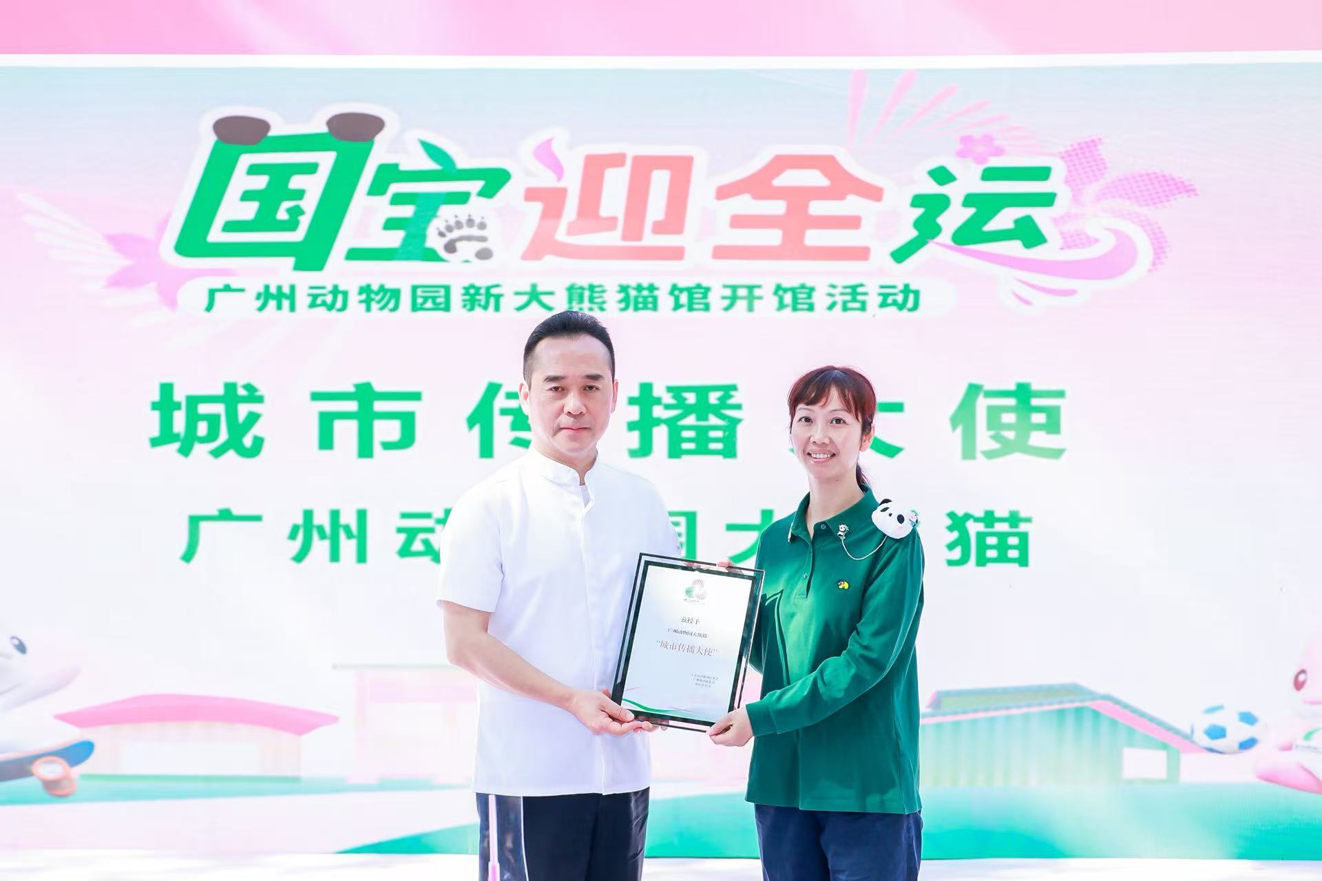 现场,十五运会和残特奥会广州赛区执委会授予广动大熊猫“城市传播大使”称号,传递花城魅力,助力城市文化传播和交流。