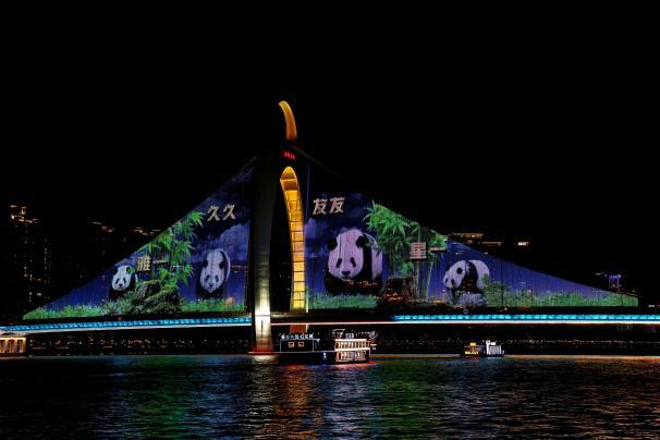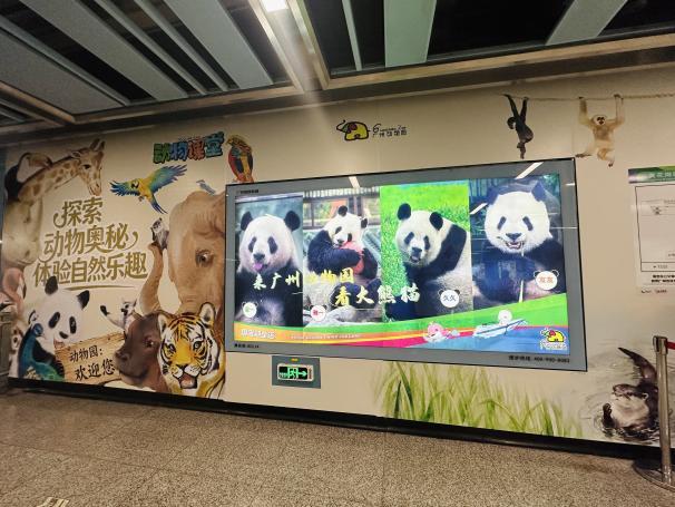 “广动号”熊猫主题列车已于2025年10月18日正式启动,车厢布满四只大熊猫的可爱形象;广州塔、广州国际媒体港、“一江两岸”24栋建筑立面、猎德大桥等,齐齐亮起主题灯光;全市20个公交站台焕新主题“皮肤”,熊猫公交6路与78路上线;市民步出黄花岗地铁站A口,便会进入以动物园为主题的特色通道,两侧灯箱展映广州动物园大熊猫、金丝猴等珍稀国宝,把生态保护融入出行日常。