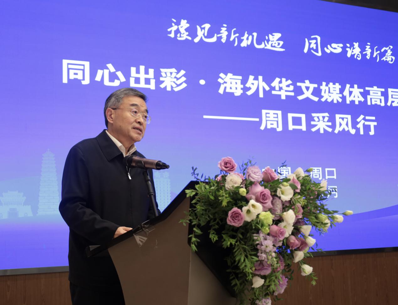 周口市委常委皇甫立新在致辞中向华媒高层重点推介了周口三张熠熠生辉的名片:商贸物流繁荣之地、历史文化厚重之地、产业发展迅速之地。“今天的周口站在了全面推进现代化建设的新起点,正锚定“1+2+4+N”目标任务体系和“16232”总体工作思路,奋力谱写中原大地推进中国式现代化周口新篇章。”皇甫立新诚邀华文媒体深入考察周口的产业优势、区位优势、交通优势、文旅优势,大力宣传周口的悠久历史、灿烂文化,大力推介周口的营商环境、巨大商机,让更多人了解周口、奔赴周口、投资周口。