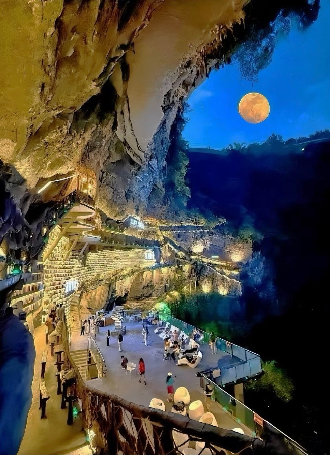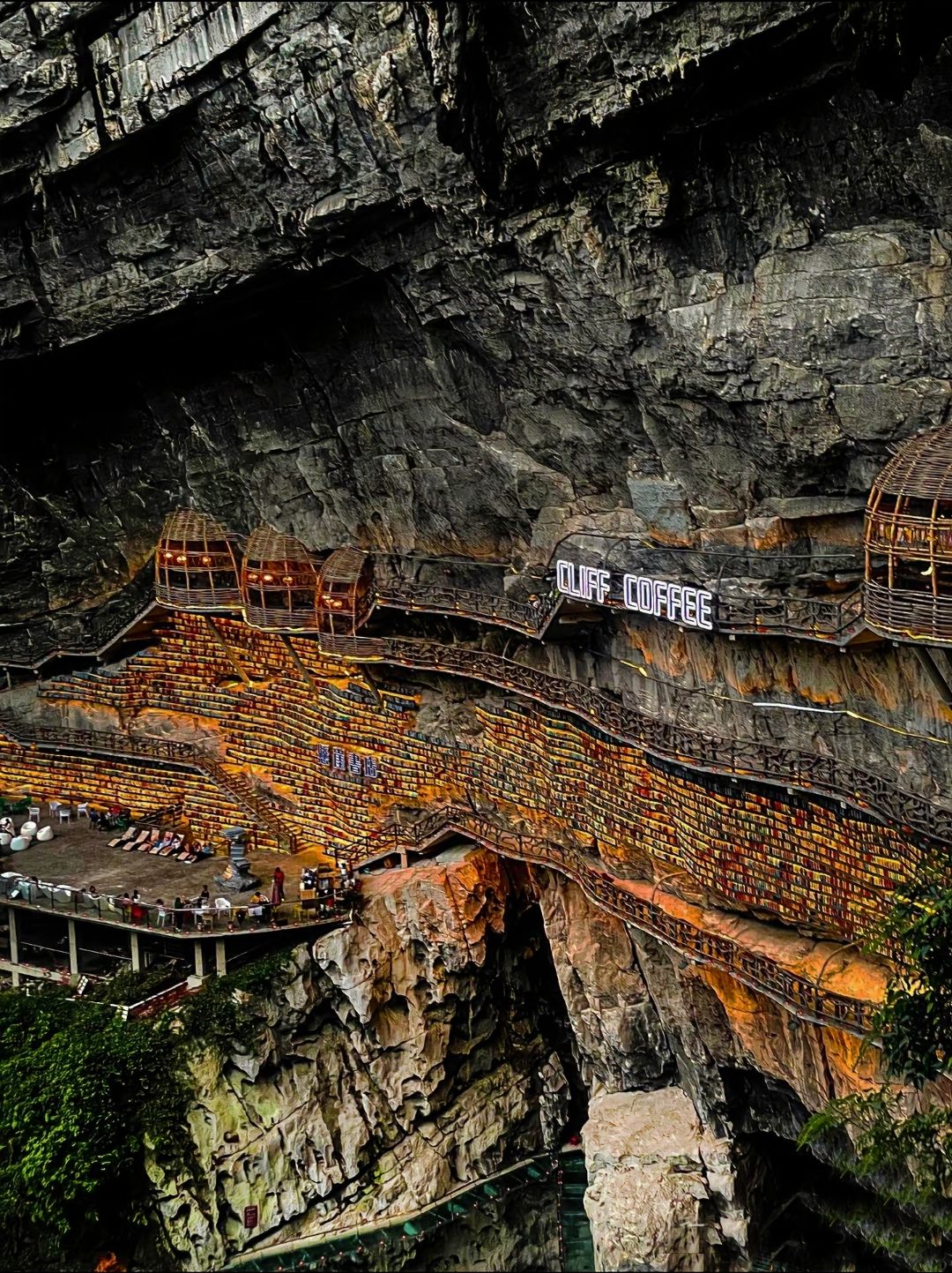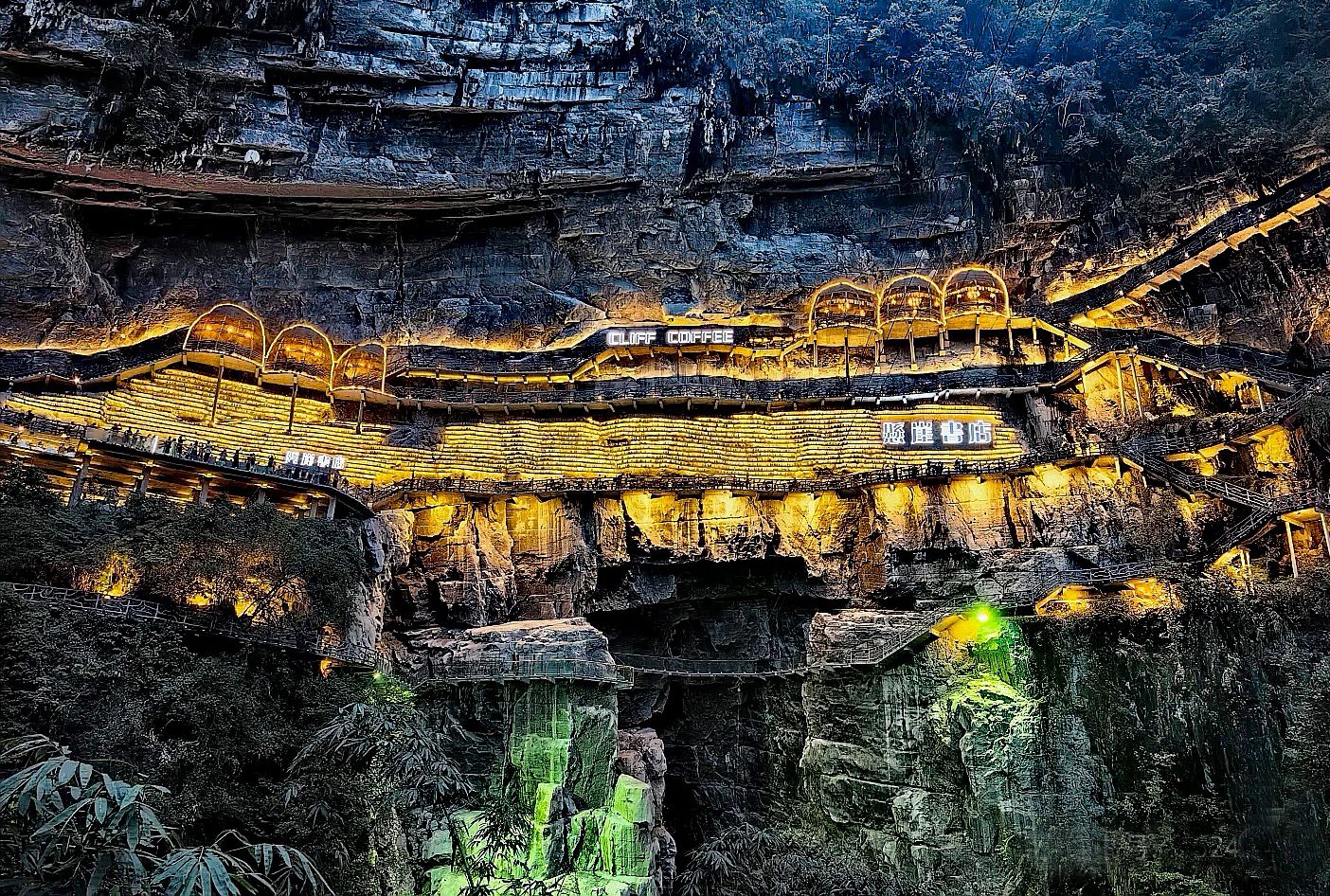 Accéderàla Mianhua Library demande un peu d’effort:perchée au bord d’une falaise entourée de forêts luxuriantes,elle se mérite au prix d’une petite expédition.Mais une fois sur place,la récompense estàla hauteur.L’extérieur impressionne d’abord par ses passerelles et balcons en bois suspendus dans le vide.Àl’intérieur,des milliers d’ouvragesépousent les parois irrégulières de la grotte,transformant ce lieu insolite en temple de lecture.