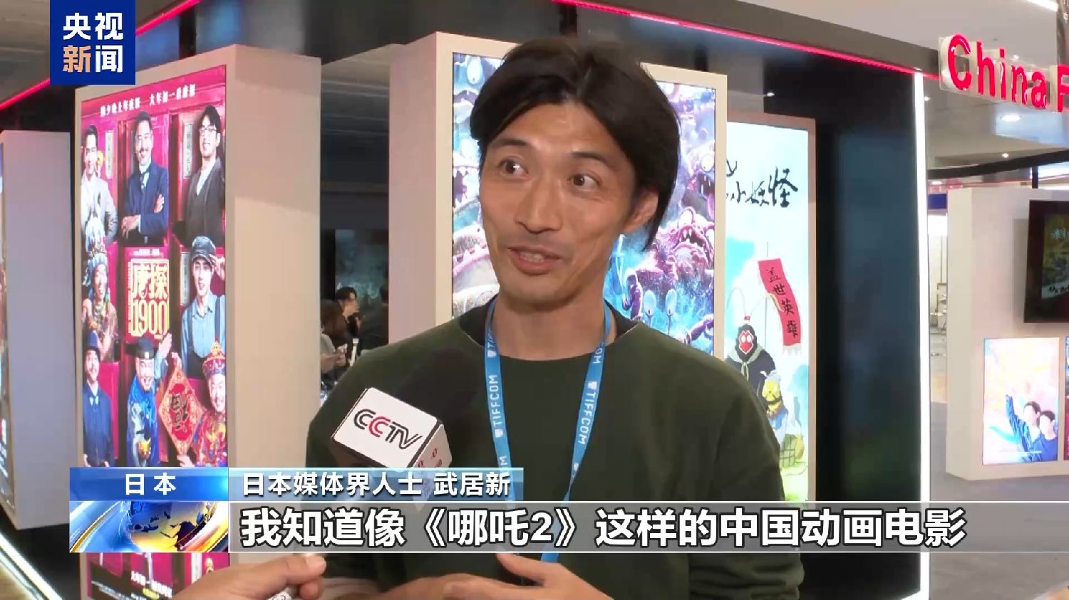 日本媒体界人士武居新:我知道像《哪吒2》这样的中国动画电影特别有人气,我从新闻当中了解到包括人工智能技术、计算机图形技术等新的科技都被运用到了中国动画电影制作当中。