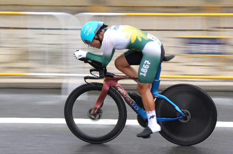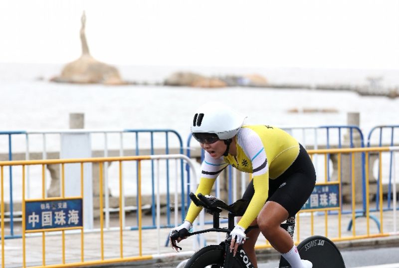 新华社照片,珠海(广东),2025年11月7日日,海南队选手张好在比赛中。最终,她夺得冠军。当日,第十五届全国运动会公路自行车女子个人计时赛决赛在珠海举行。新华社记者颜麟蕴摄