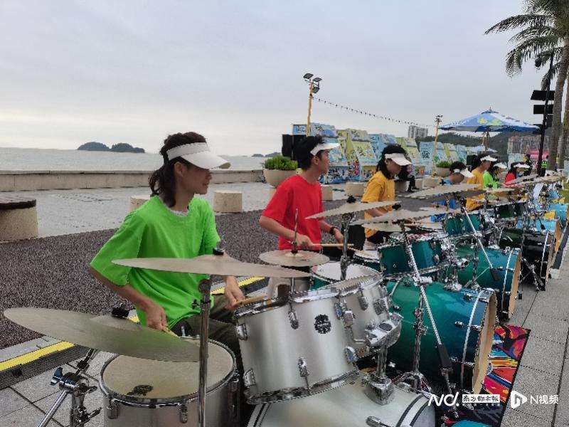 在唐家湾沙滩,八名专业鼓手以重新编曲的《海阔天空》《真的爱你》等粤语经典,打造“八鼓齐鸣·粤韵铿锵”表演。多鼓组的层次叠加既保留原曲情感内核,又通过底鼓、军鼓、镲片的呼应放大节奏冲击力,营造“一曲双听”的视听体验。