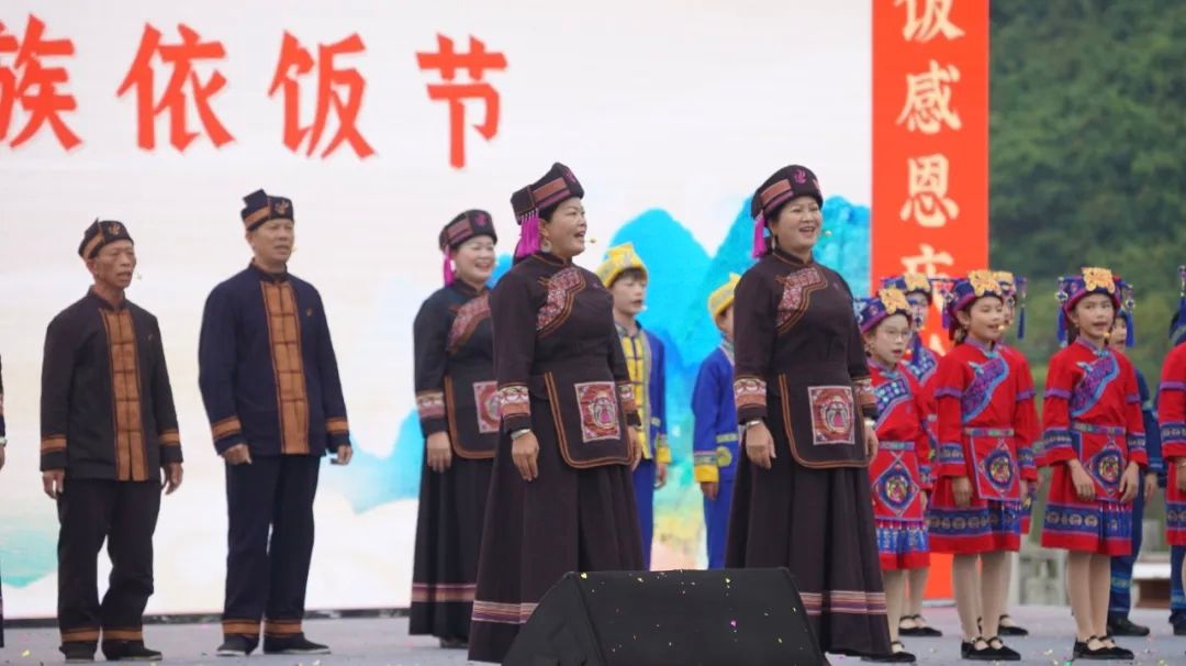 During the opening ceremony,guests and representatives of the publicoffered sheaves of newly harvested riceto honor the ancestors of the Mulam people.Dozens of children collectively recited the“Ode to Yifan”,followed by a series of ethnic song and dance performances,including“Joyful Yifan Festival”,“Mulam Ancient Songs Showcase”,“Dragon and Lion Dance”,“Blossoms of Ethnic Unity”,and“Songs of Happiness.”These performances expressed the Mulam people’s gratitude to their ancestors and their prayers for prosperity,good harvests,and family well-being in the coming year.