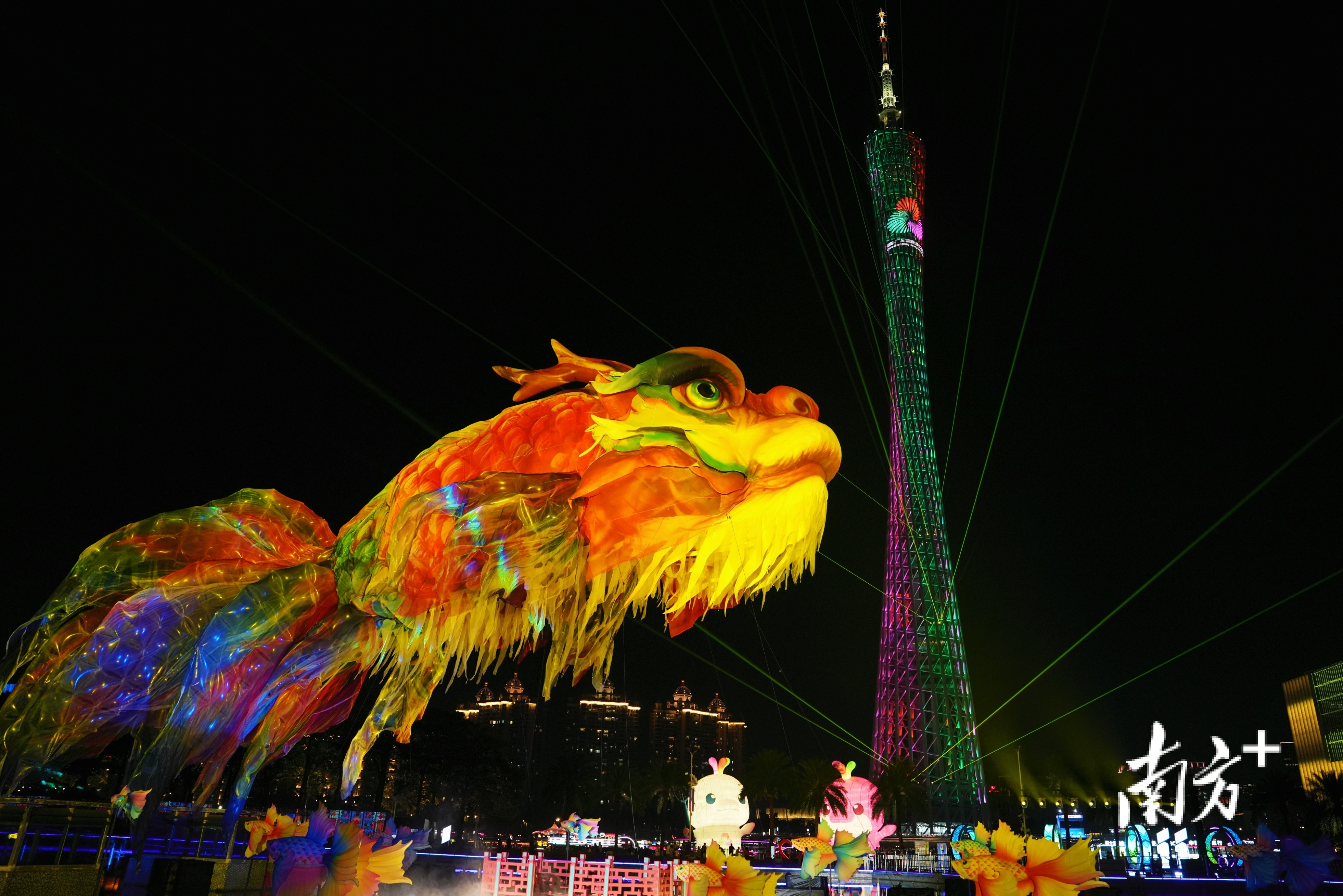 十五运会开幕式上惊艳亮相的大鳌鱼再度“登场”广州国际灯光节。