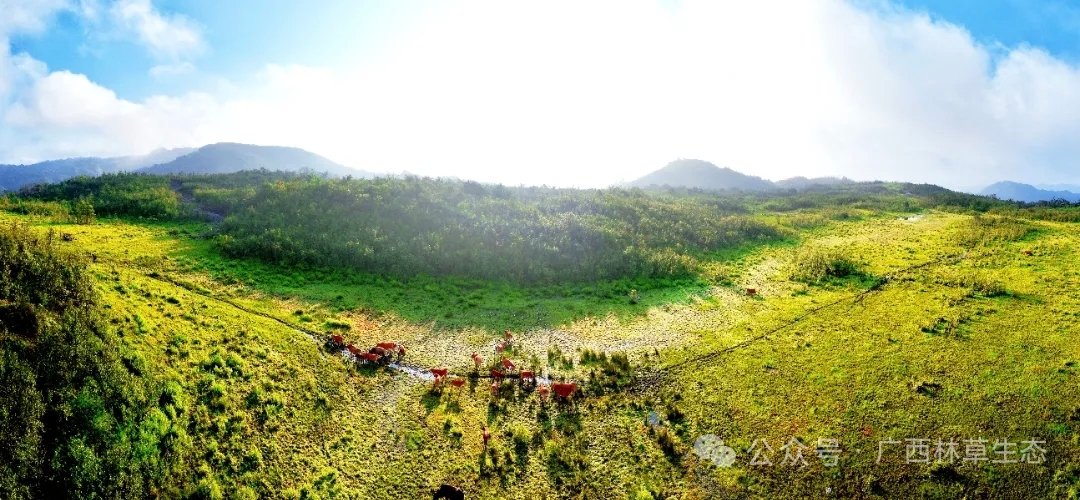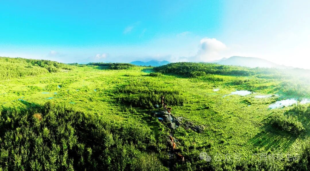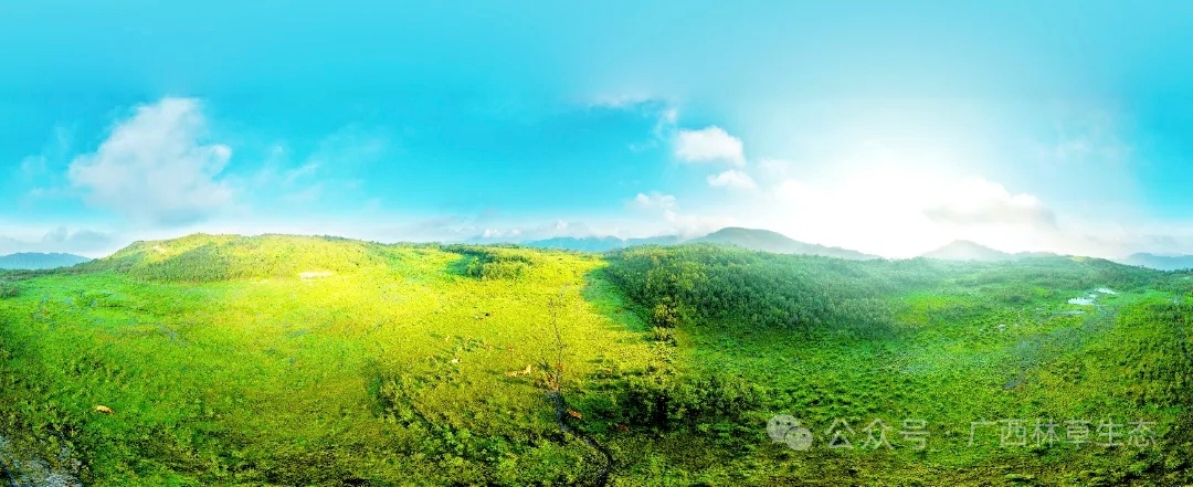 ▲罗城仫佬族自治县境内的金解天坪山顶呈平原状态,山顶平原中拥有沼泽湿地。