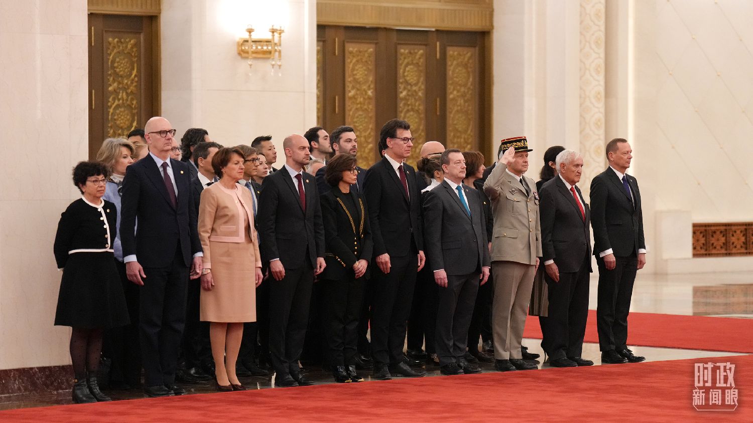 △欢迎仪式上的法方代表团。(总台记者李晋拍摄)