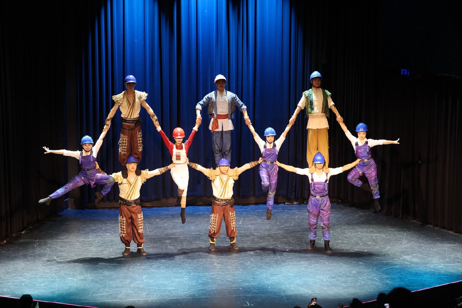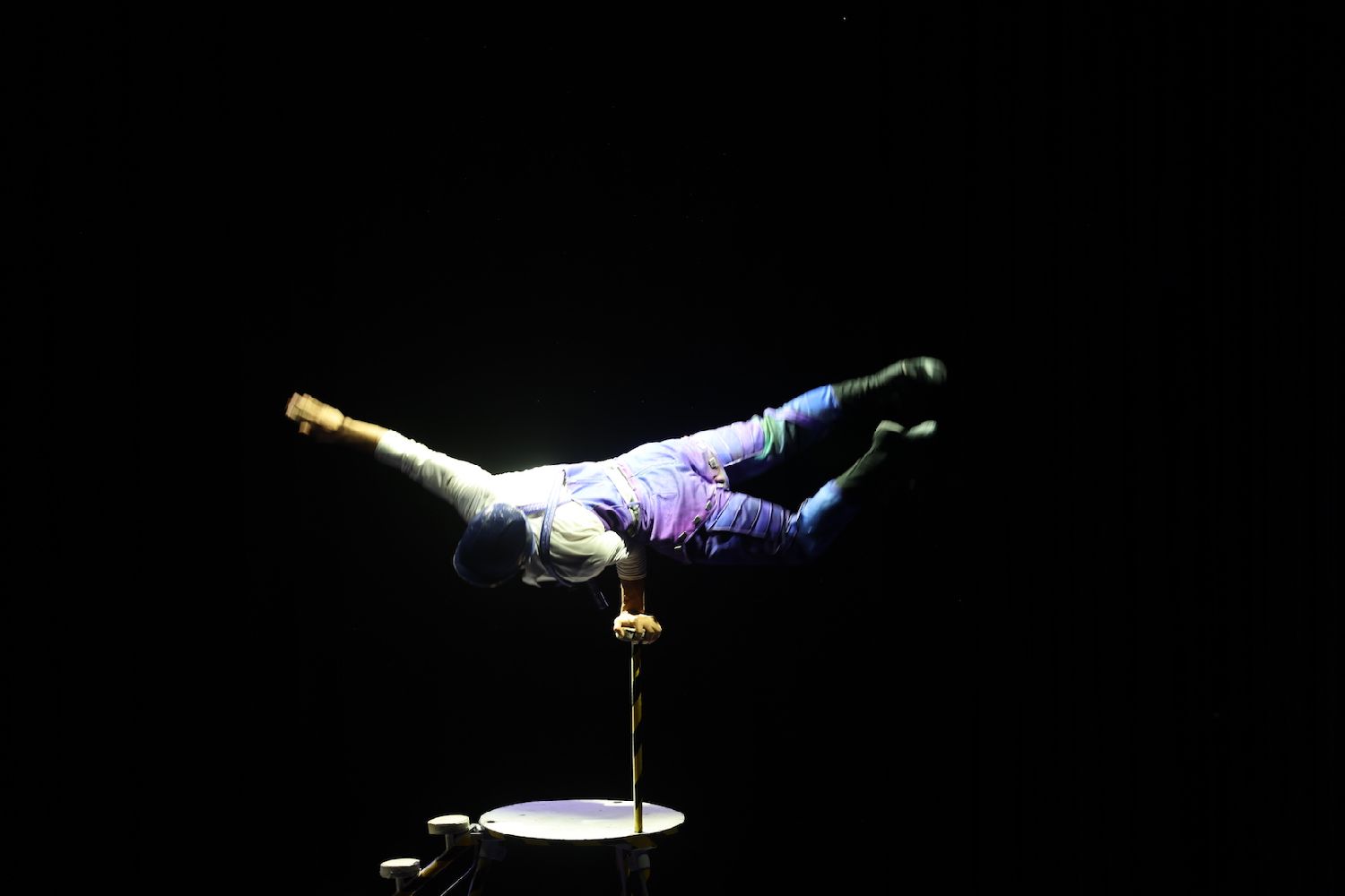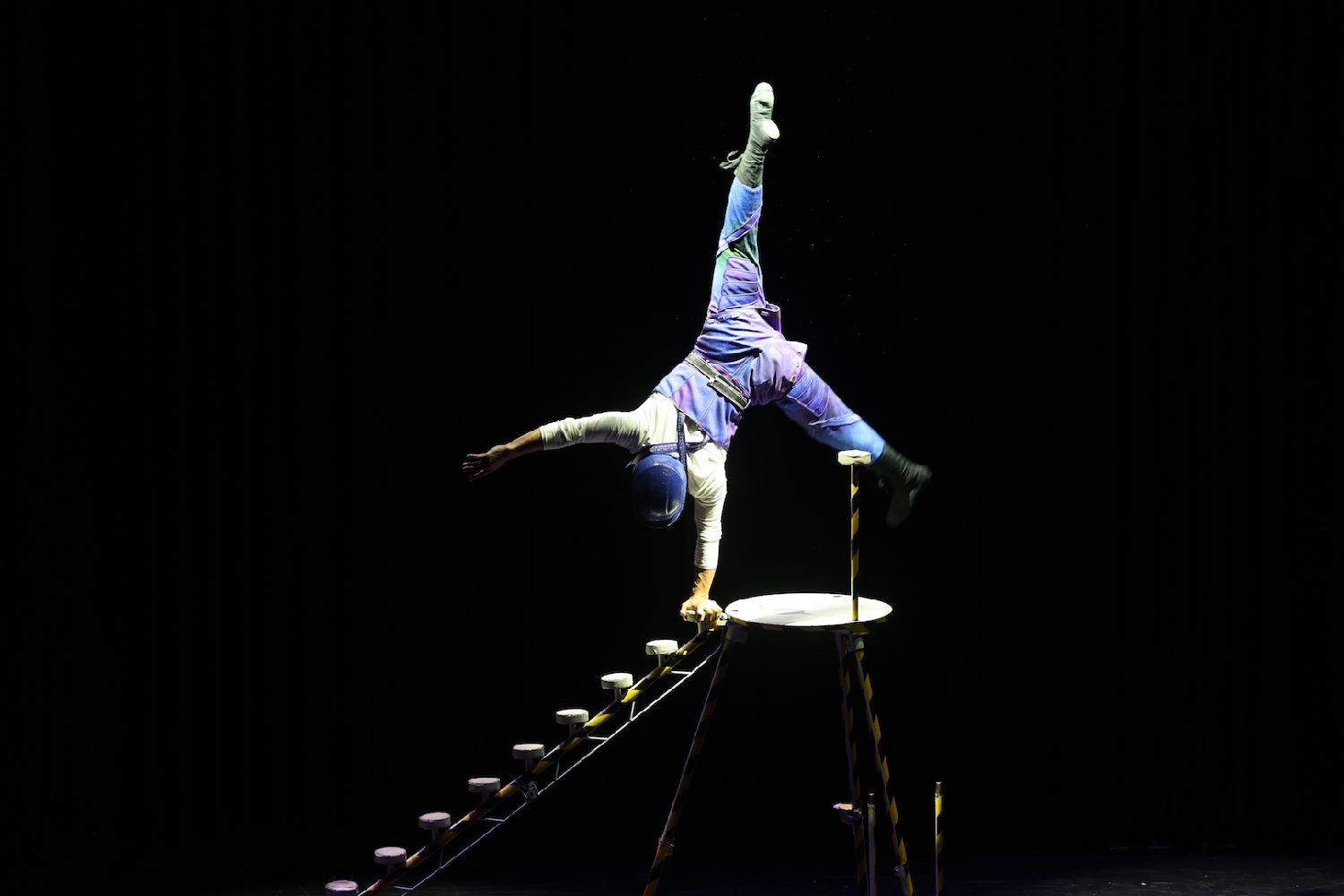 《刺破重重阻碍》的手技表演中,几个演员抛接金属圈,每一次旋转如同群山间回响的回声;《脚上功:在月下》里,足尖托起旋转的道具,轻如月光落在水面。