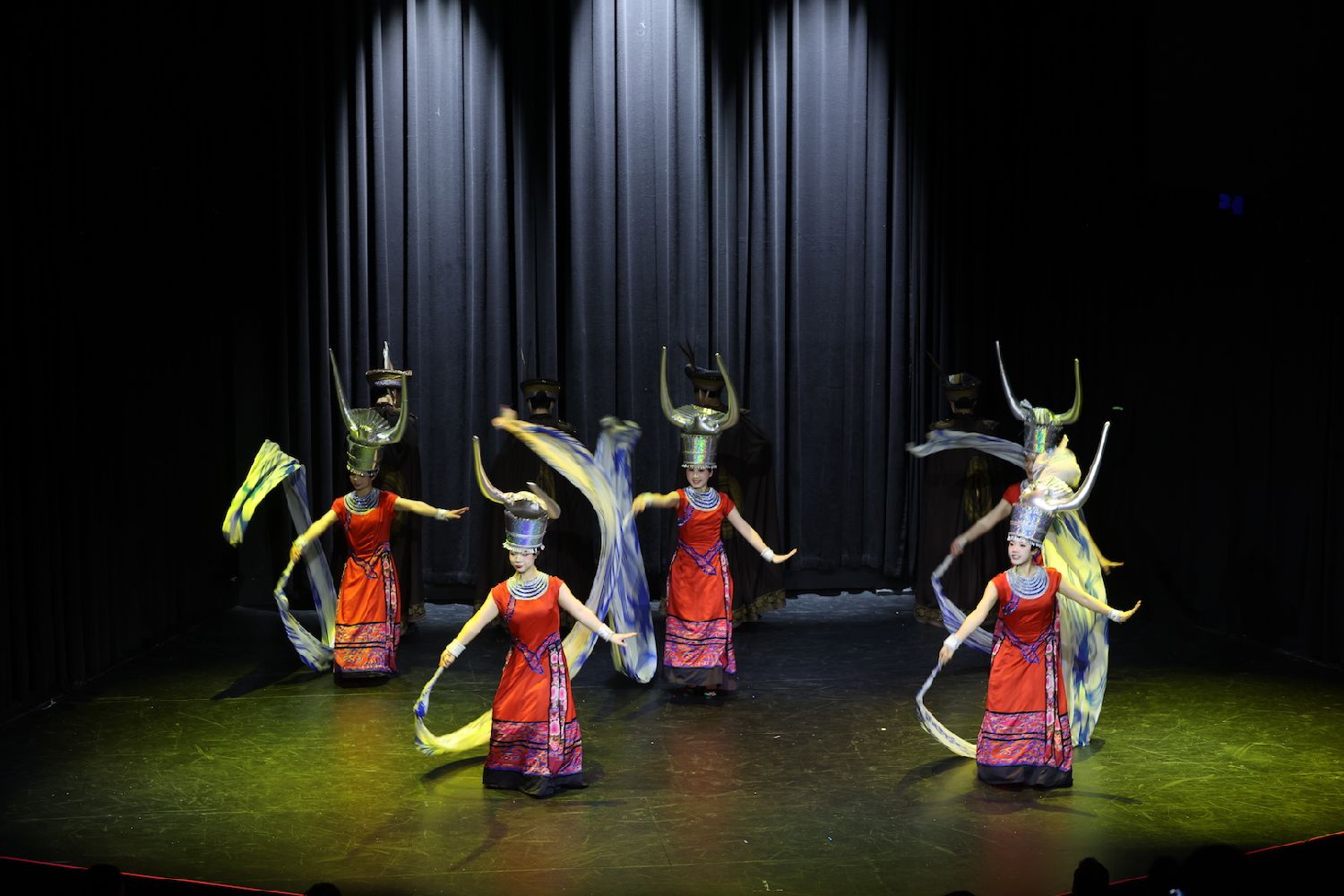 演出中,没有任何一句对白。音乐是苗岭的古歌、侗寨的嗓音、鼓点里带着风声。动作为语言,节奏是诗性。