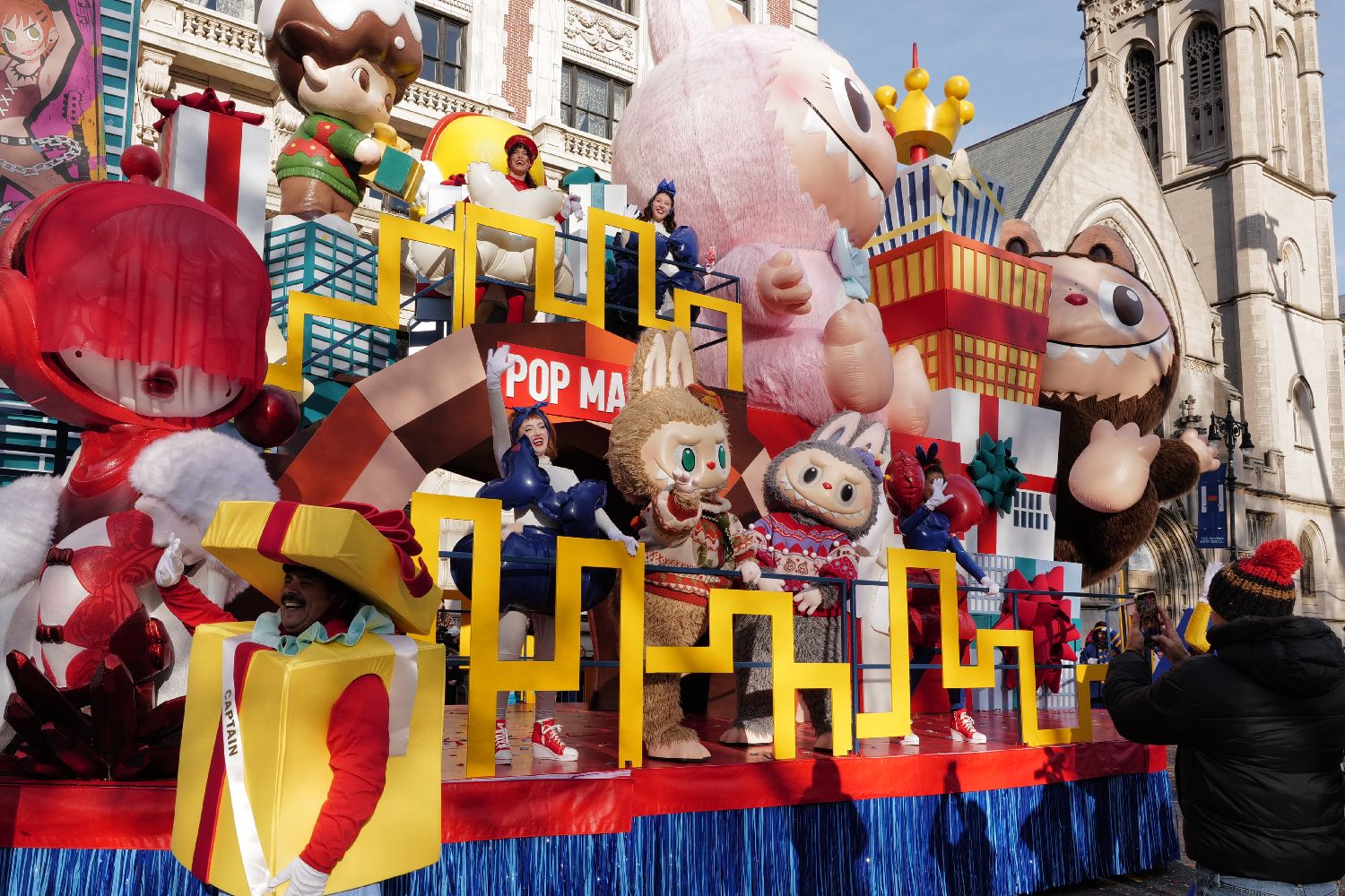 当地时间11月27日,第99届梅西百货感恩节大游行在美国纽约举行。图为风靡全球的LABUBU首次亮相纽约感恩节大游行。(图片来源:中新社)