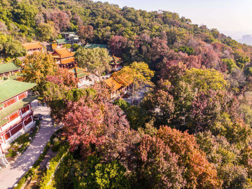 位于江门市新会区的广东圭峰山国家森林公园是赏红叶的热门目的地,红叶以三角枫为主,玉台寺周边最为集中,核心枫林面积约16公顷,另有约300亩枫树点缀山间,形成“圭峰叠翠”的层林尽染之景。12月以来,枫叶渐入佳境,港澳旅行团结伴而来,港澳旅行团结伴而来,常在玉台寺、登山古道等点位成团打卡。来自广州、深圳等珠三角城市的短途自驾游客显著增多,周末与节假日人气更旺。森林公园工作人员梁兆禧透露:“眼下正是赏枫的好时机,随着冷空气的到访,枫叶色彩愈发浓郁明艳,预计12月底至明年1月初迎来颜值巅峰。”