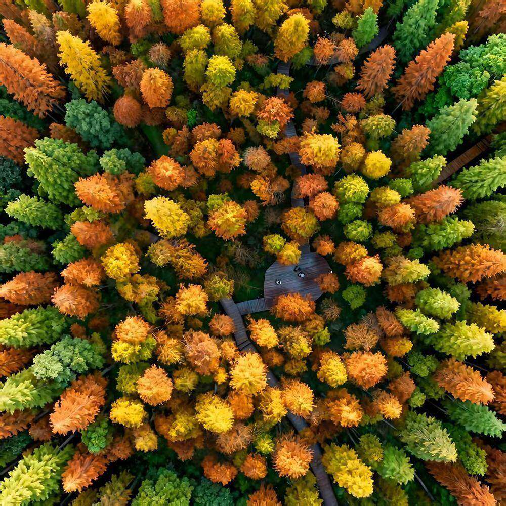 在广东天井山国家森林公园,30亩落羽杉红、黄、绿交织,宛如打翻了的颜料盘,11月起进入显色期,12月色彩最为浓郁,可观赏到“多彩森林”。此外,园内还分布着阔叶林彩林约2万亩,主要的彩叶树种有山乌桕、枫香、漆树、盐肤木等。受海拔与树种差异影响,天井山的赏叶季通常从每年10月启动,持续至12月底。
