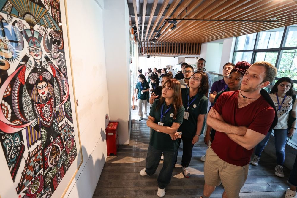2024年7月7日,研习营营员在贵阳孔学堂艺文馆参观。当日,“知行合一·心学寻源”贵州行——国际儒学联合会2024汉学青年学者研习营,在位于贵州省贵阳市花溪区的贵阳孔学堂开营,来自15个国家22名汉学青年学者将在贵州开展为期8天的研学活动。