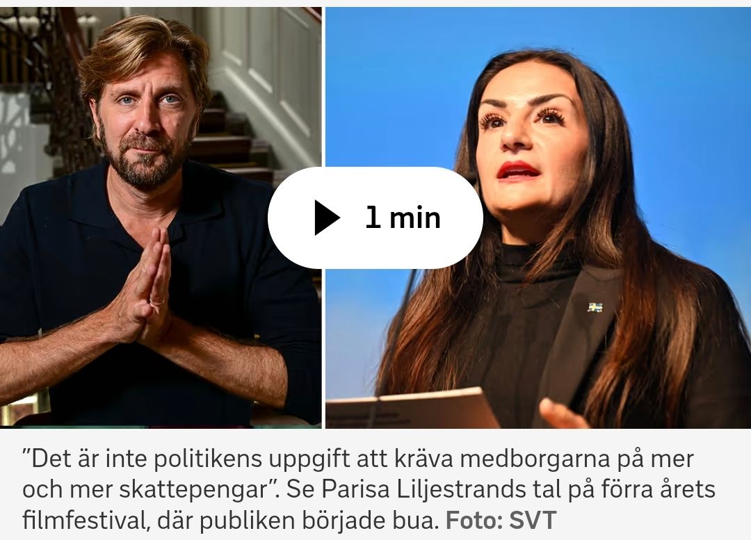“要求公民不断缴纳更多税款并不是政治的职责”——观看文化大臣帕丽莎·莉莉耶斯特兰德在去年电影节上的演讲,当时观众开始发出嘘声。照片:SVT