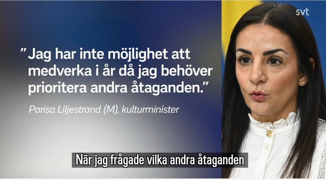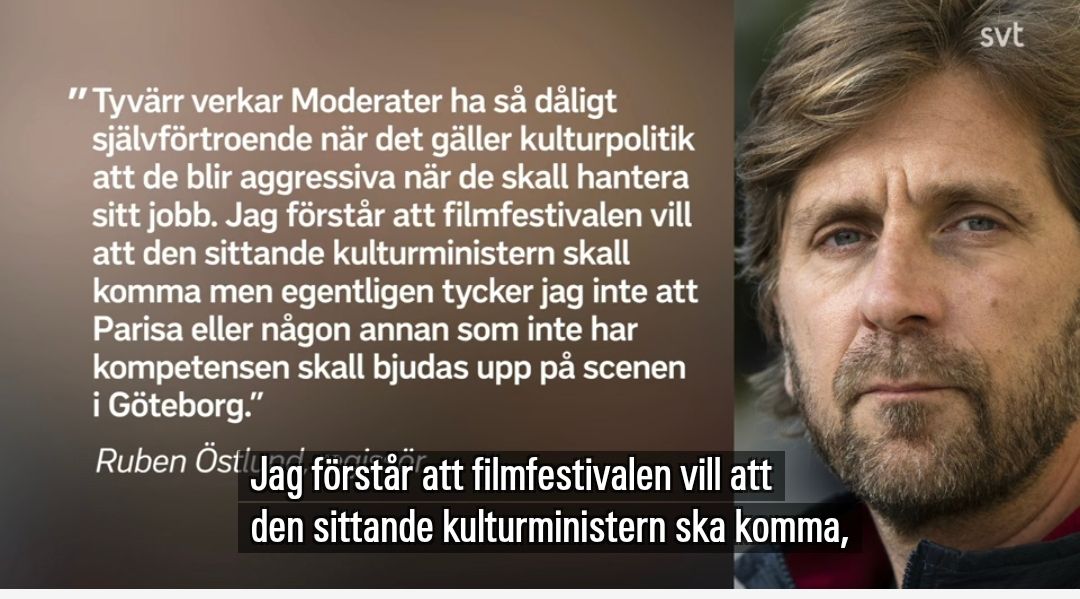 “我理解电影节希望现任文化大臣出席,但说实话,我认为像帕丽莎这样、或者任何不具备相关专业能力的人,根本就不该被邀请站上哥德堡电影节的舞台。”——厄斯特伦德写给SVT。