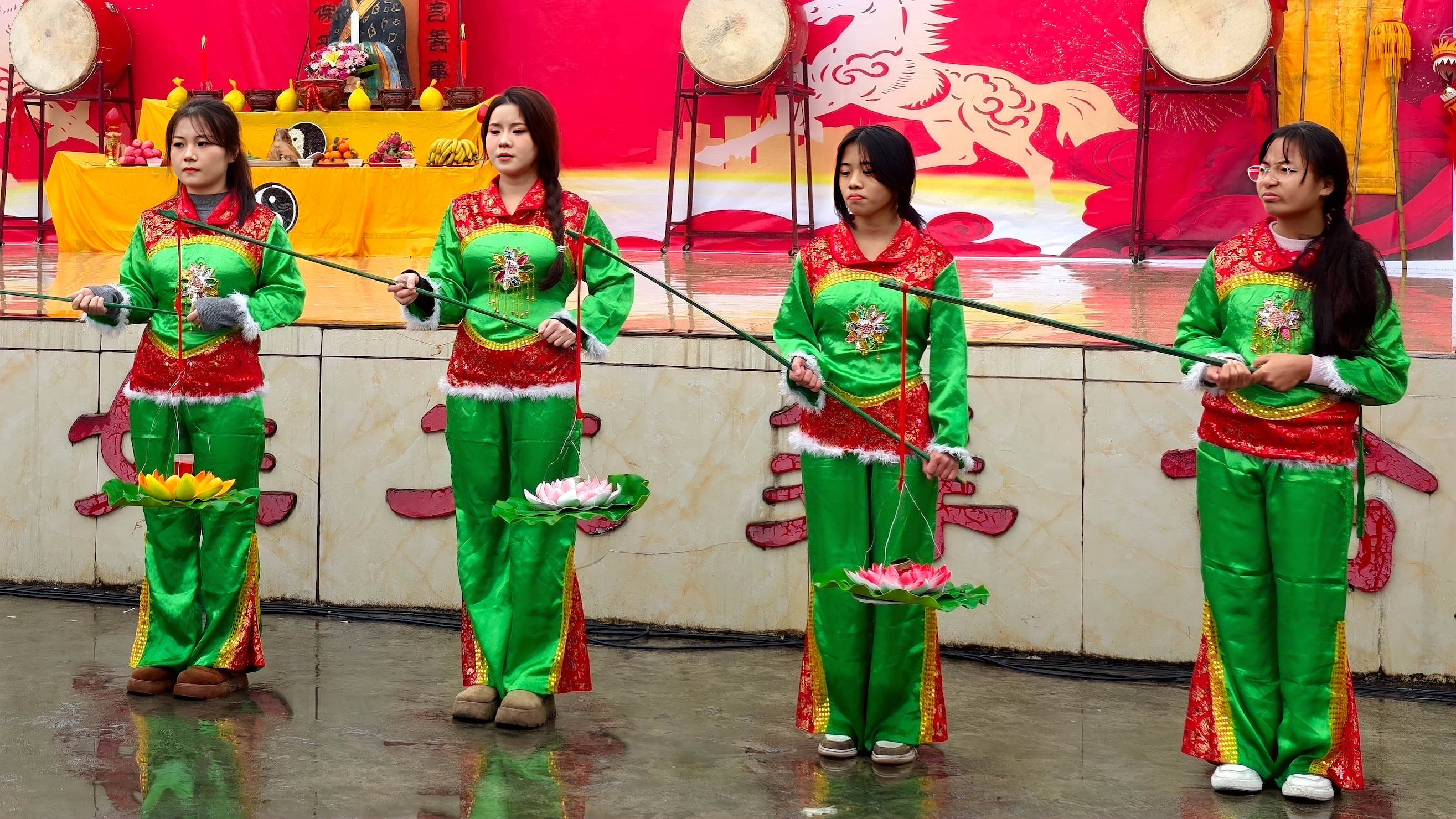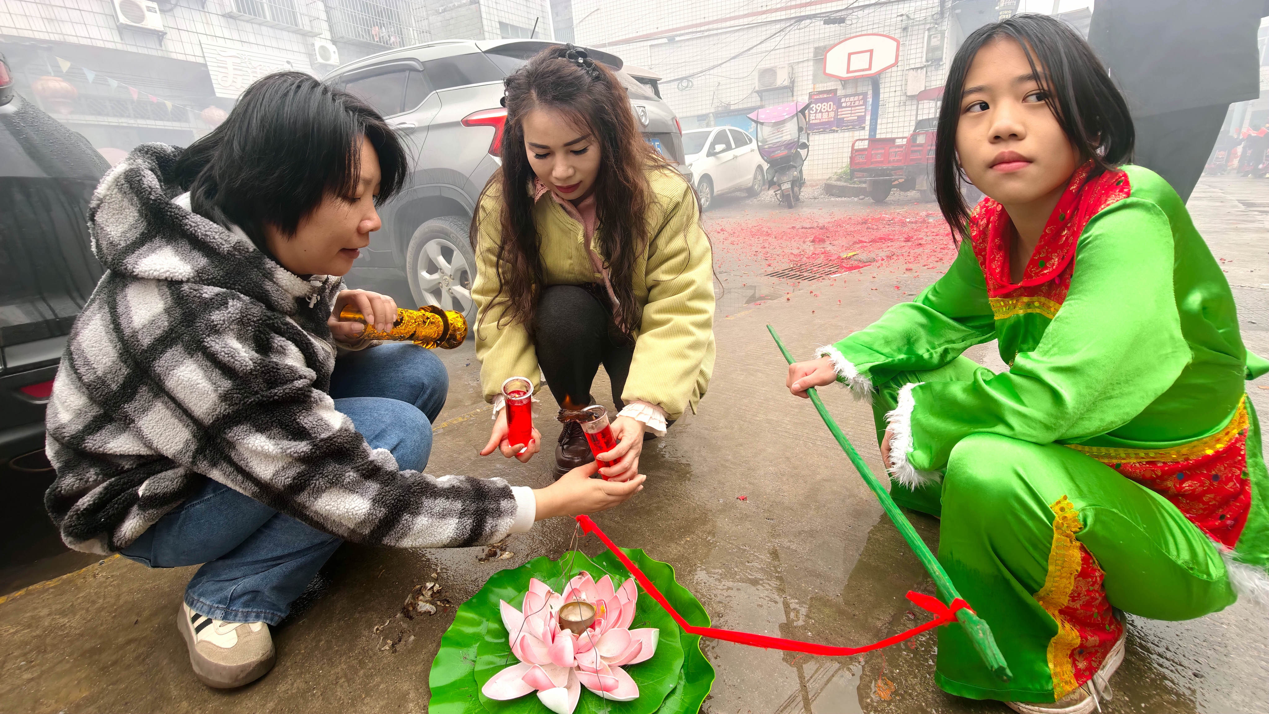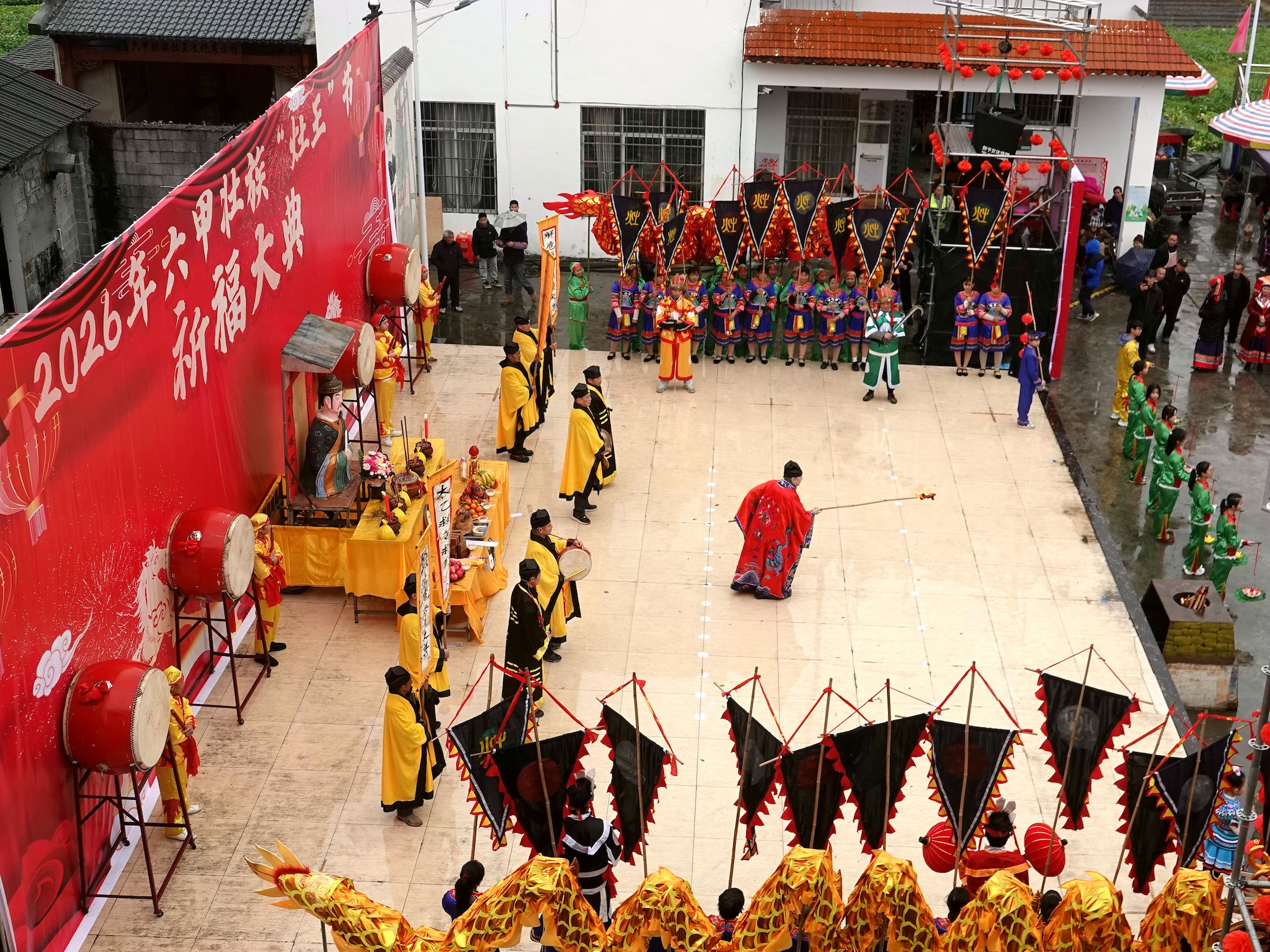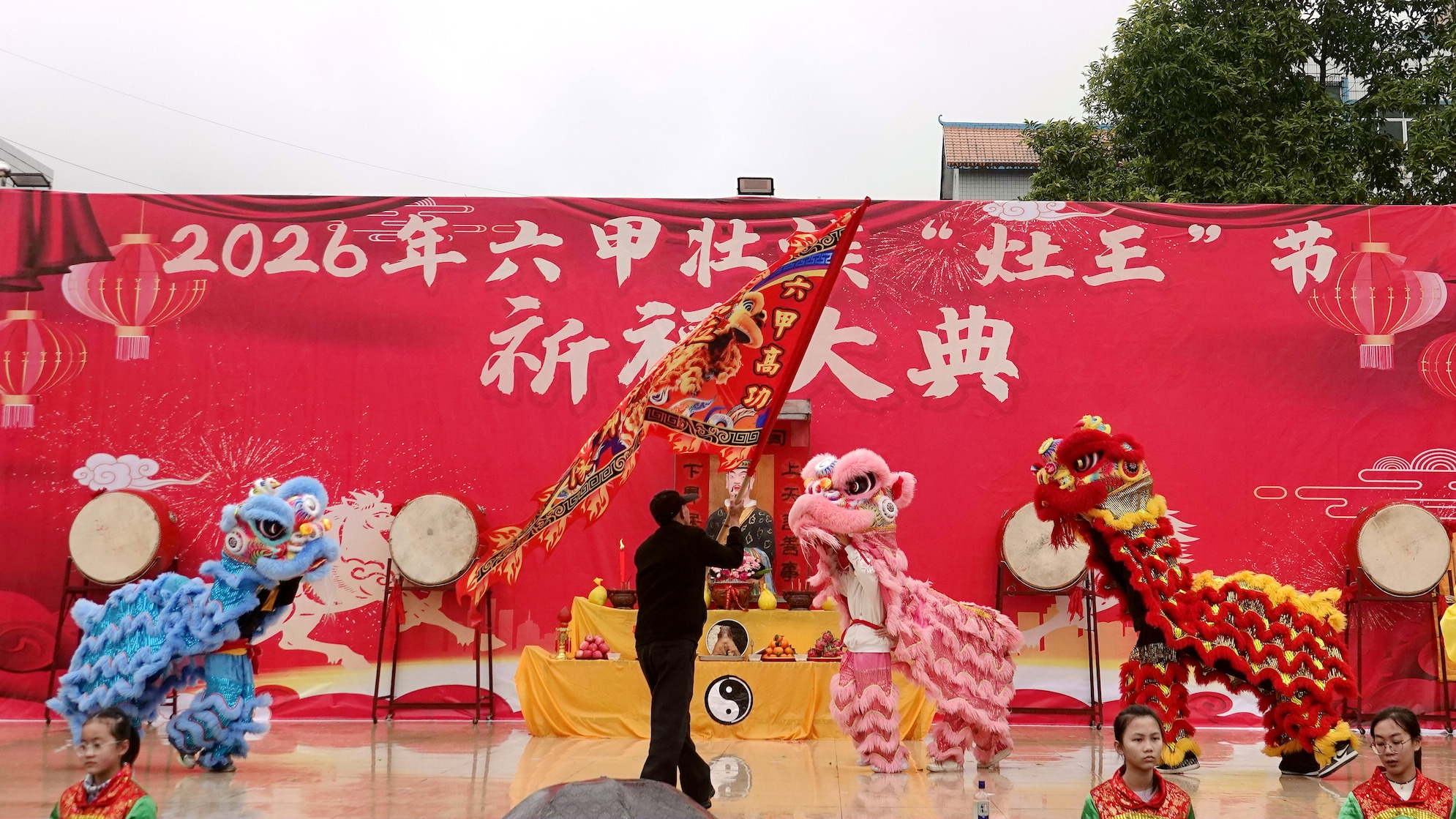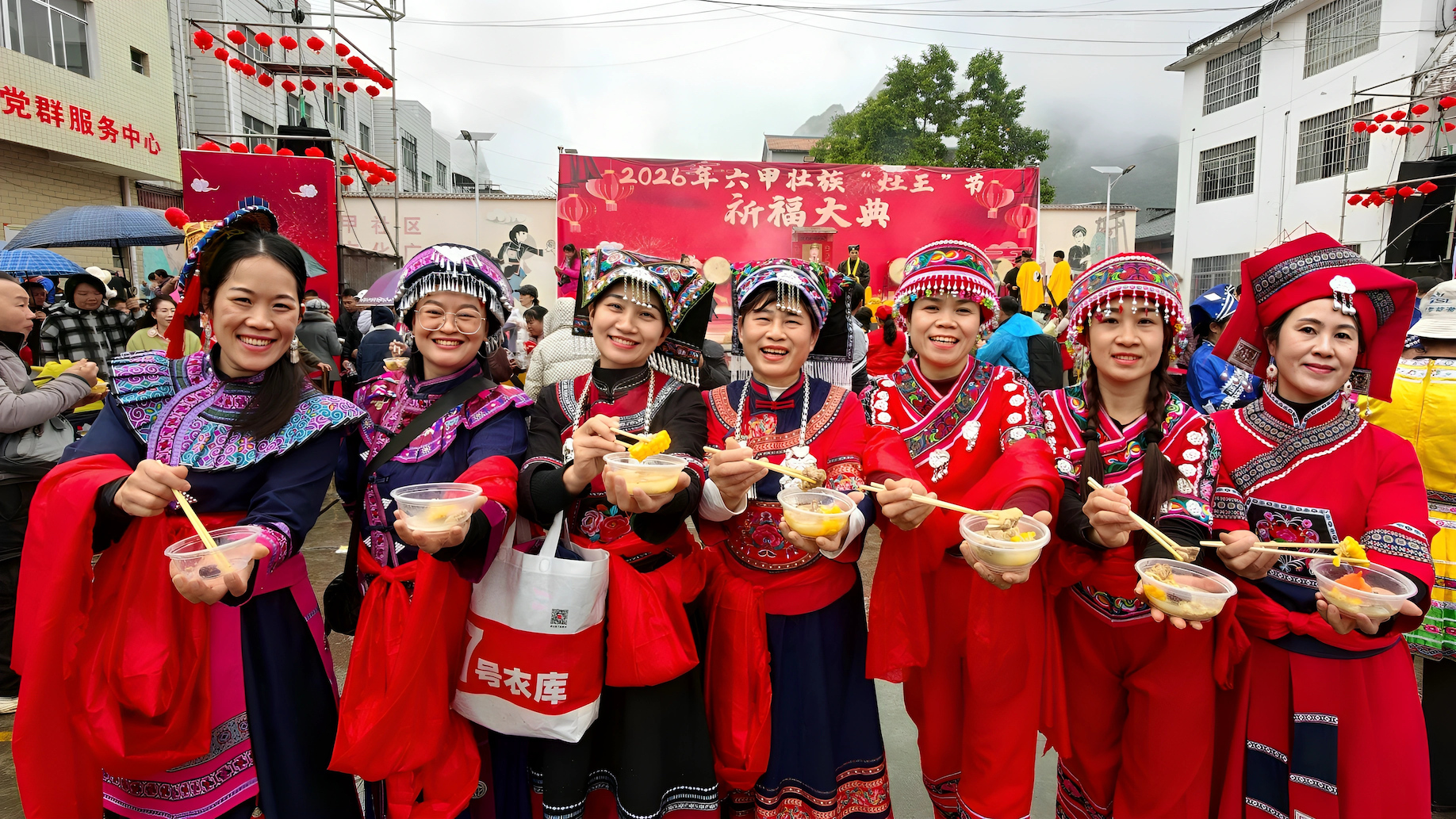 当天细雨濛濛,六甲镇群山云雾缭绕,山水相映如诗如画。11时30分,壮族“灶王”节在热闹的舞龙舞狮中拉开帷幕。当地群众遵循传统习俗,请灶王、点灶火、烹佳肴,抬着灶王像巡游村寨,把平安吉祥、福禄寿喜送到千家万户。活动最后,各族群众欢聚一堂,共品灶王节特色美食,在欢声笑语中度过温馨祥和的小年。 2月10日,当地群众在广西河池市金城江区六甲壮族“灶王”节点燃莲花灯。