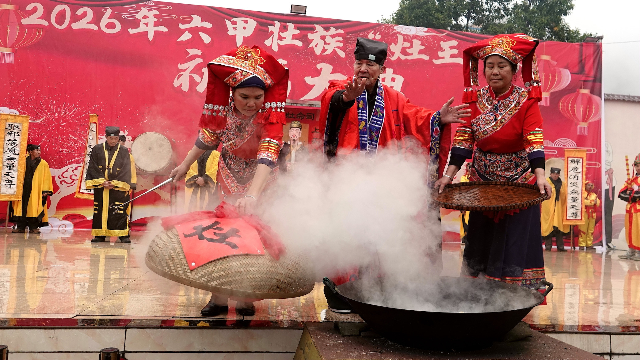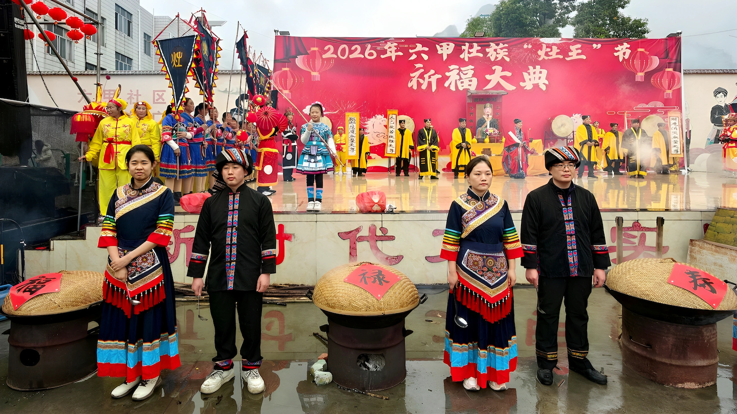 2月10日,文化底蕴深厚的广西河池市金城江区六甲壮族“灶王”节祭灶仪式。