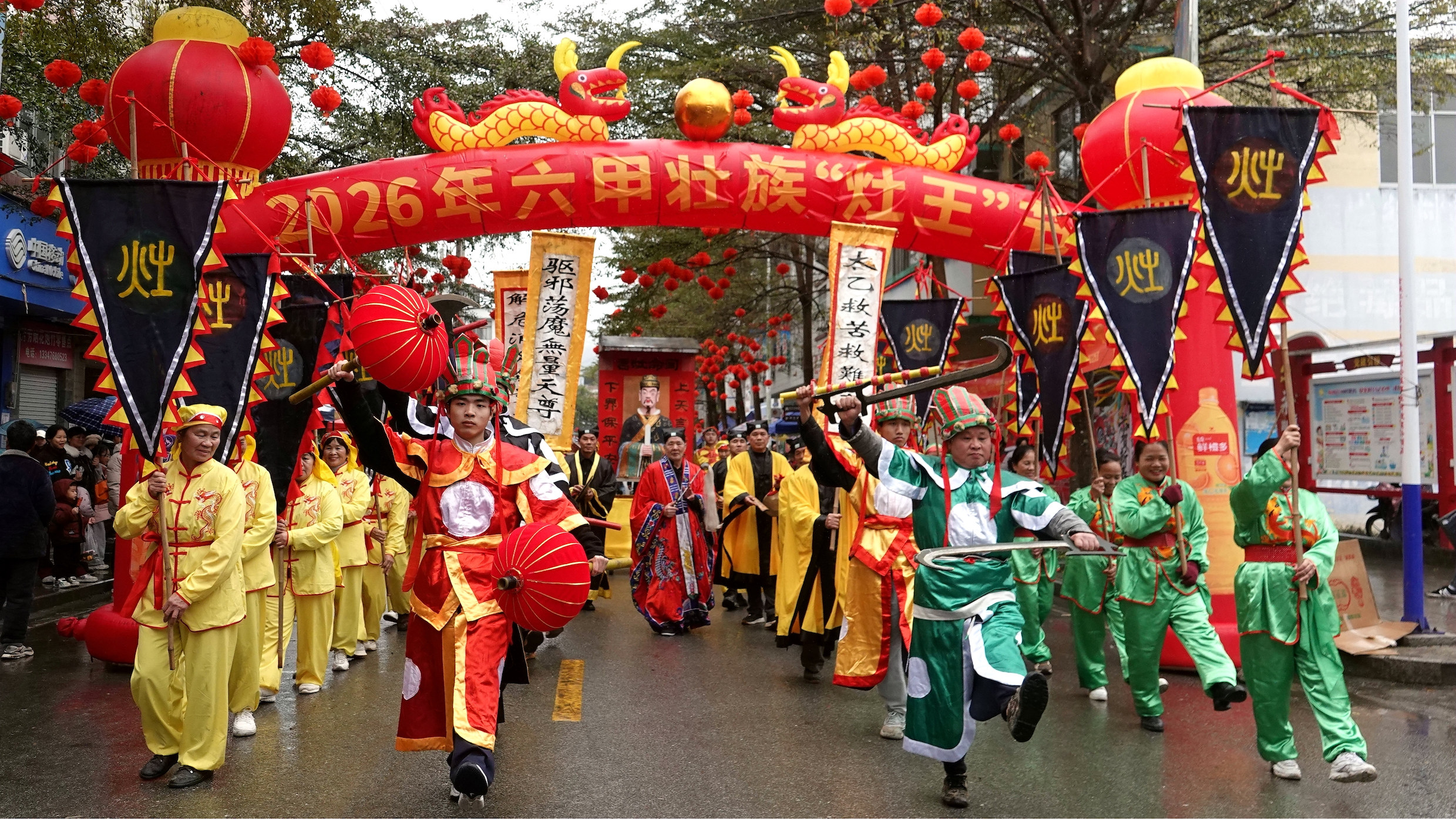 2月10日,广西河池市金城江区六甲壮族“灶王”独具民族特色的巡游活动。
