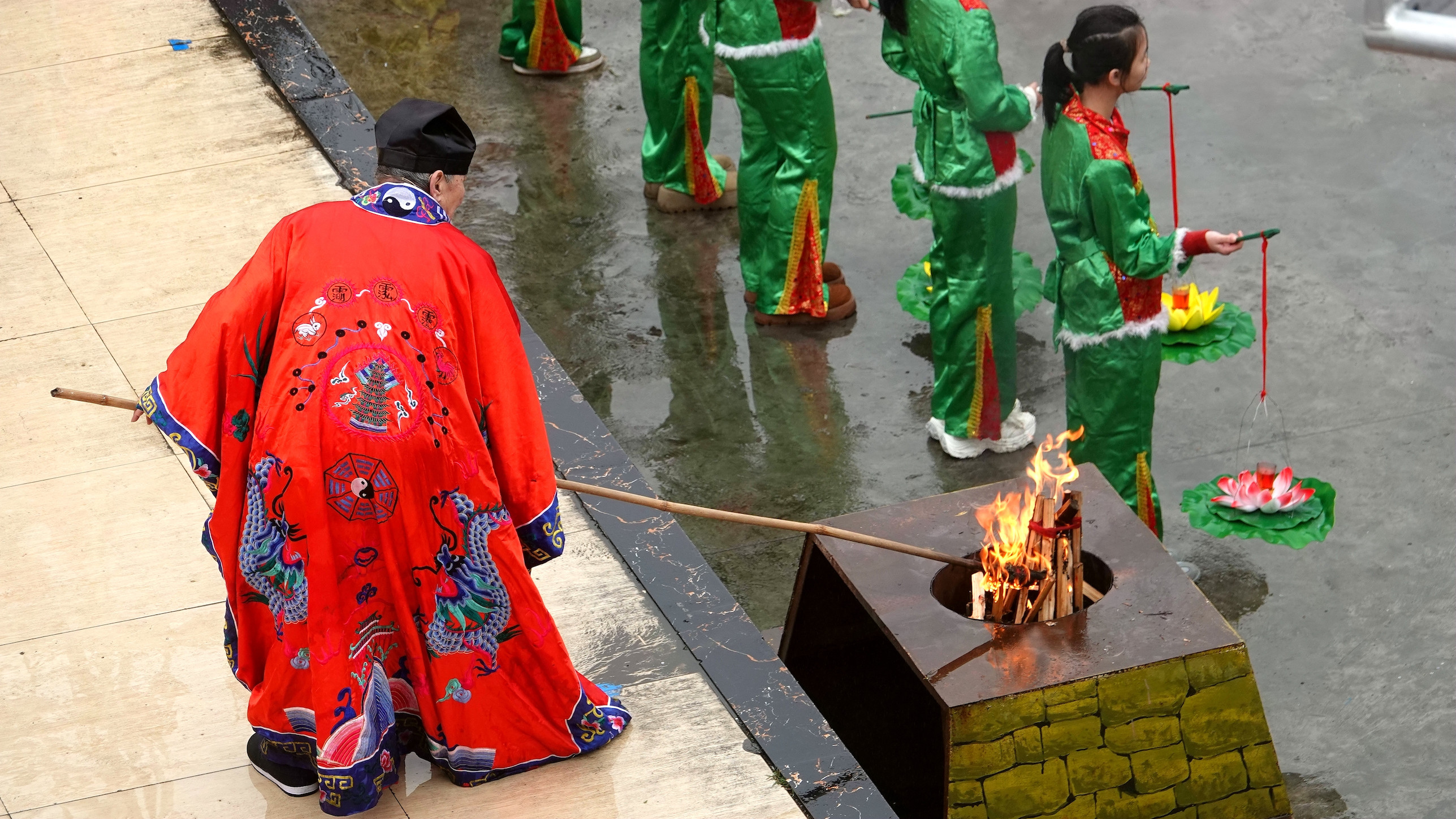 2月10日,广西河池市金城江区六甲壮族“灶王”节点燃灶火。