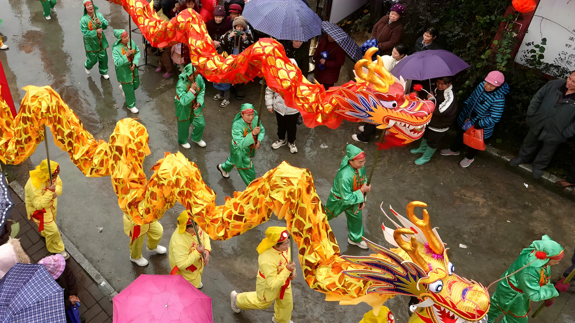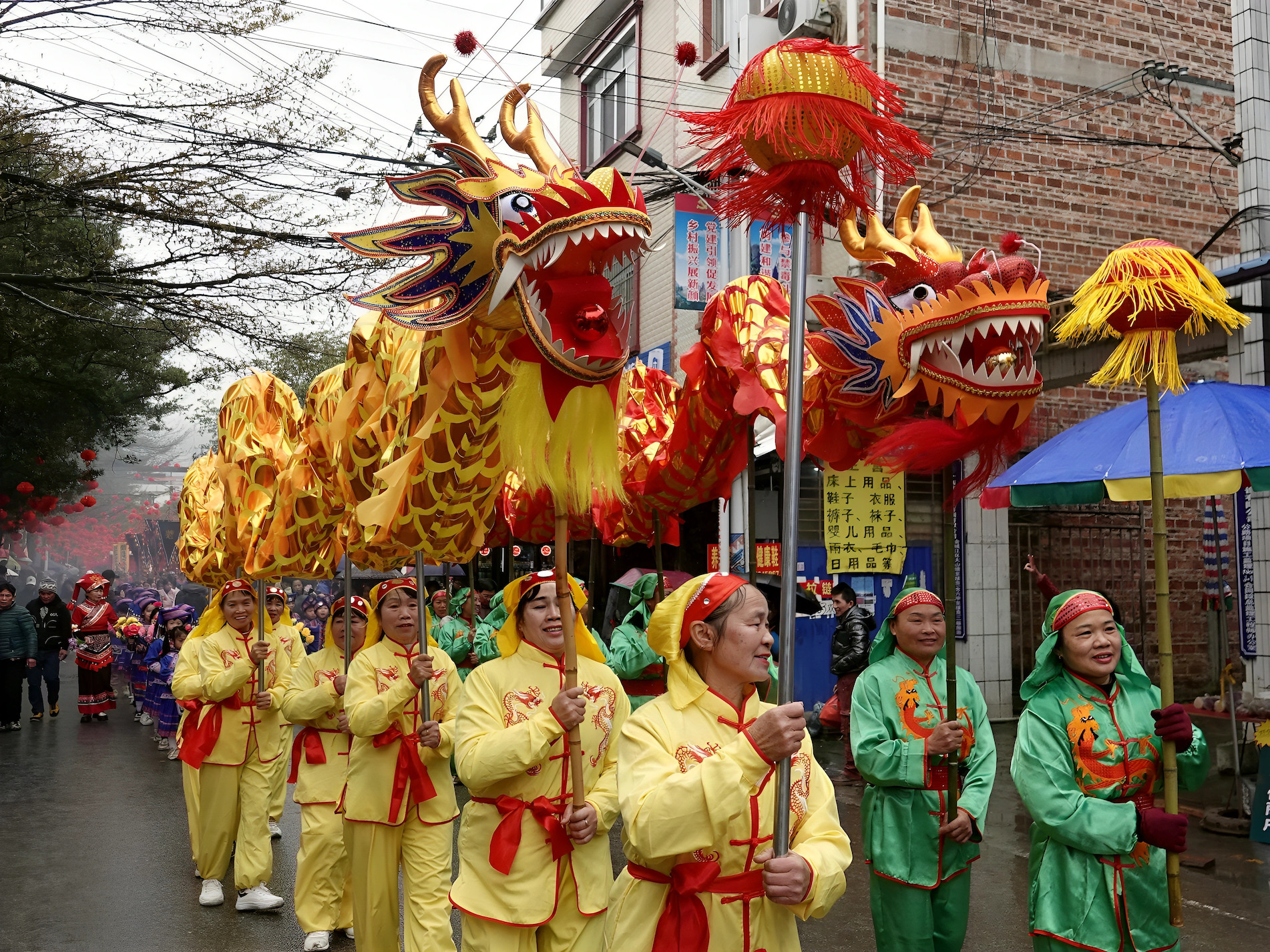 2月10日,广西河池市金城江区六甲壮族“灶王”节舞龙巡游