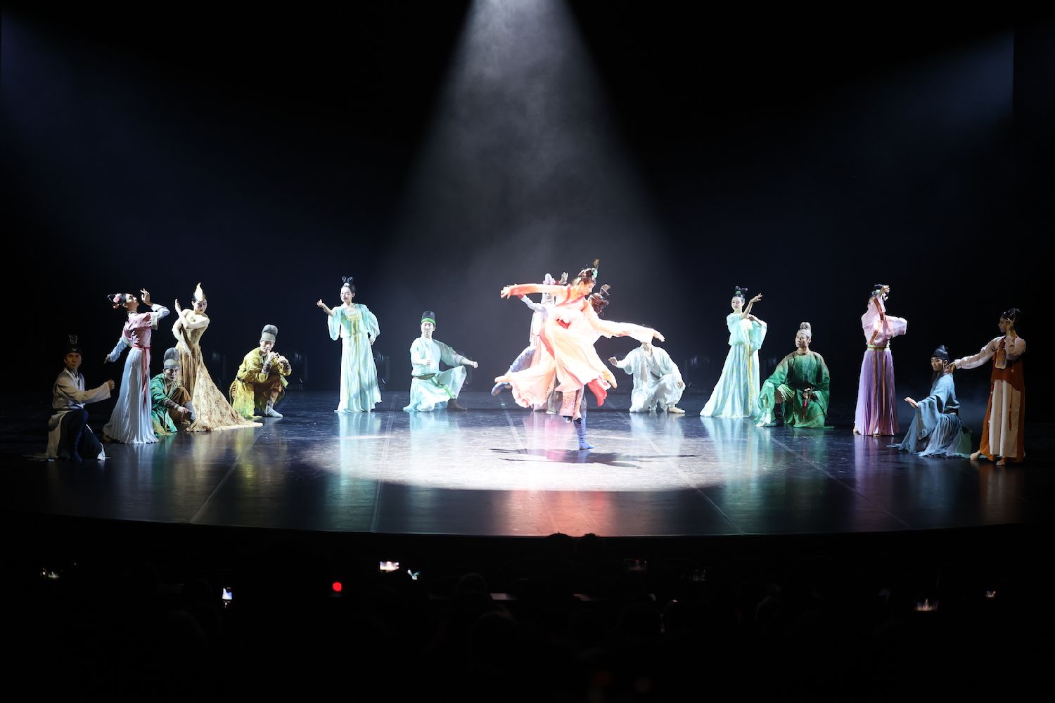 As art took center stage,Rhythms of the Eastunfolded in a sweeping narrative.Anchored in classical Chinese dance,the performance traversed history and contemporary life alike:from the grandeur of the Tang dynasty evoked inNew Year·Rainbow SkirtsandHeart Toward Chang’an,to the delicate expressions of vitality and Eastern aesthetics inBird Bun,Bathing in Spring,andSymphony of Blossoms.From Silk Road–themed ensemble dances to poetic recreations of compassion,craftsmanship,literature,and emotion in works such asGreat Physician’s Sincerity,Green-Glazed Figurines,There Is a Beauty,andThe Peacock Flies Southeast,the program culminated inA Thousand-Year Gaze Back,where past and present converged,and time resonated with civilization.