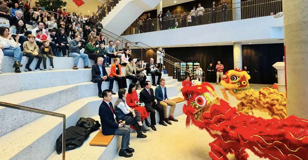 当红金相间的醒狮跃入北欧企业总部的中庭,当中国鼓点在丹麦冬日的玻璃穹顶下回荡,一种极具象征意味的文化场景正在悄然发生——中国春节,不再只是华人社群的节日记忆,而正在走进欧洲主流社会的日常空间。