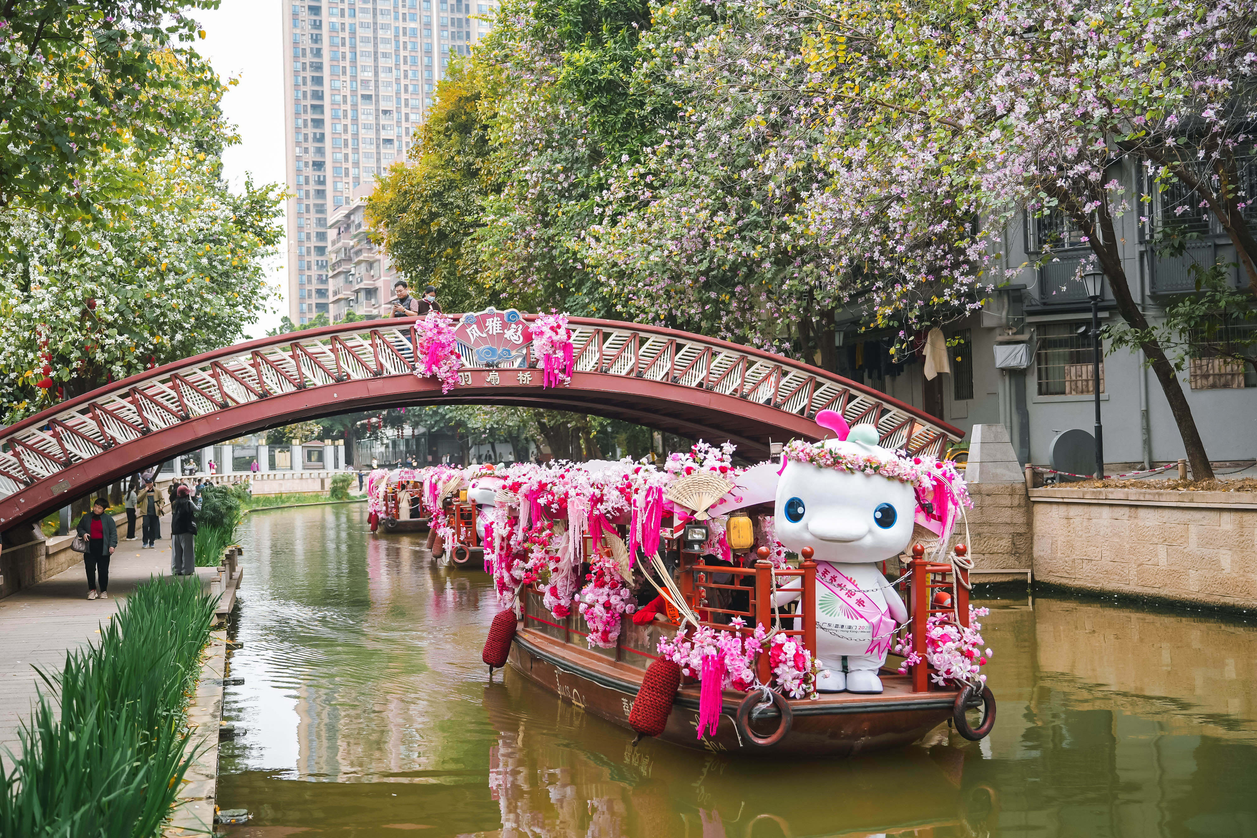 乘着荔湾水上花市的游船拜年,在越秀西湖花市的牌楼前欢快起舞……春节将至,老朋友“大湾鸡”又带着满当当的“贺岁档期”和我们见面啦。