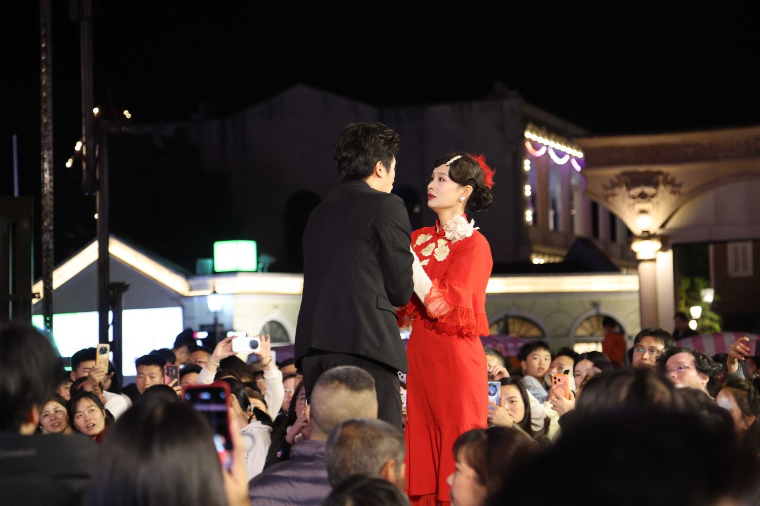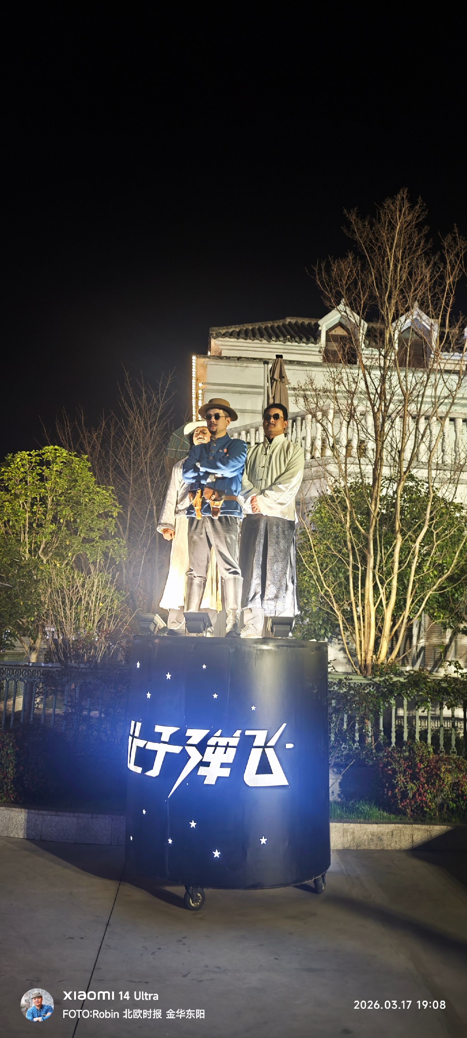 Standing in Hengdian at night,watching actors move through recreated streets of another era,