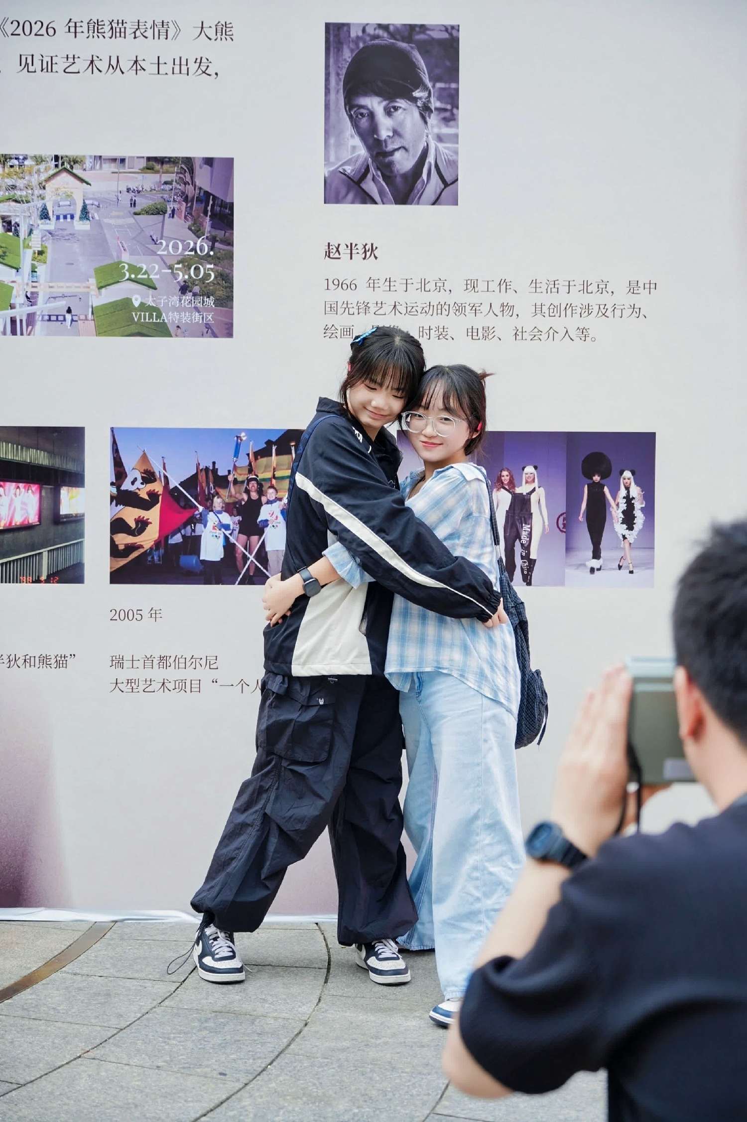 首次面向全球揭幕的《2026年熊貓表情》由招商文化聯合商管團隊共同策劃,深圳灣公共藝術季·蛇口展區與深圳藝術周特別單元聯動呈現。這一次,趙半狄以兩隻輕輕擁抱、並肩站立的熊貓形象,構成了一幅寧靜而深邃的畫面。與此前作品中熊貓的狀態不同,這件作品回歸到一個極為簡單卻又感人的動作——擁抱。